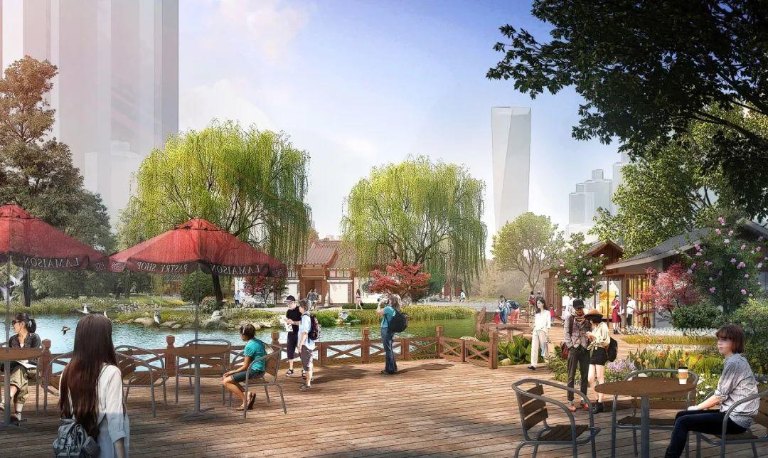 项目配套建筑以现代建筑风格与新中式建筑风格相结合,现代建筑风格区域将通过多种业态提供市民基础服务功能,新中式建筑风格区域将通过景观打造、场景重塑等手段,回顾历史,再现北园地区本土特色文化及风貌,延续泉脉、文脉,重塑本土文化印记。
