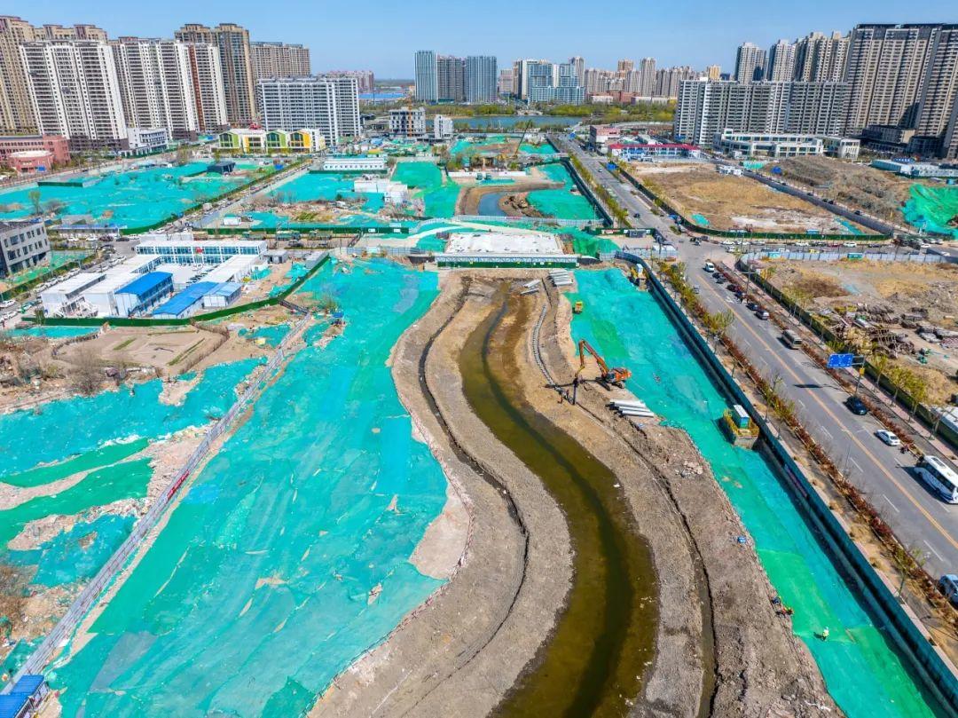 今年3月,北园大街-小清河连通工程河道景观部分破土动工。该项目位于滨河新区北湖核心区,北园大街以北、水屯路以西、水屯北路以南。项目规划总用地面积约13.59公顷,南北长约1.3公里,东西宽约90米。建成后河道南端与西泺河通过暗管连通,河道北端通过管涵穿越水屯北路和绿地与云锦湖连通,实现水系连通。
