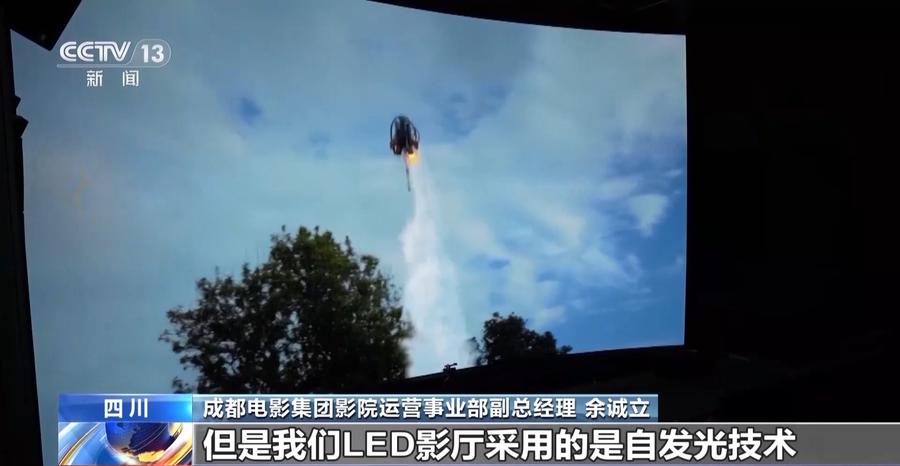 成都电影集团影院运营事业部副总经理 余诚立:传统银幕上的画面时常是中间亮、四周暗。而LED影厅采用自发光技术,就像一个超级大电视机,没有亮度的损耗。因此从任何一个角度观看亮度都不会受影响,同时色彩的对比度、鲜艳度、饱和度都是传统放映机所不能比拟的。