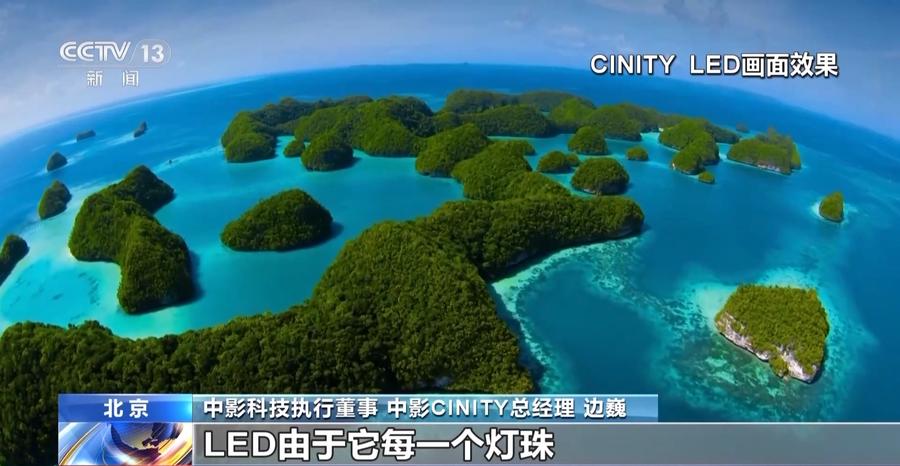 中影科技执行董事 中影CINITY总经理 边巍:LED这项技术跟我们传统的电影放映技术相比,它是一个变革式的,因为传统的电影我们是一束光由投影机投到银幕上,我们把它叫作反射式的显示技术,LED由于它每一个灯珠都是在屏幕上发光的,所以我们把它叫作直接显示技术。相当于把光的应用效率提高了很多倍,再有它的均匀度非常好,因为每一个光点都是在发光的,再有它的对比度能让我们达到非常高的一个水平。