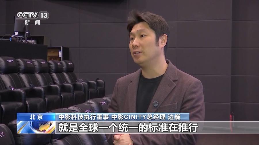 中影科技执行董事 中影CINITY总经理 边巍:因为电影从它的诞生之初,它从使用胶片开始就是全球一个统一的标准在推行,任何一个国家拍摄的电影能够在任何一个其他国家的设备上放映,在电影整个技术发展的过程中是出现了一些特殊的版本,叫高格式电影版本。它的重要意义在于什么?就是说首先你要得到片方的认可,他同意给你制作这个版本,他意识到这样的一个更好的版本,能够给观众带来最原汁原味的体验和感受。同时它能够带动周围的观众去观看这样的电影,来扩展它整个电影的影响和受众范围。