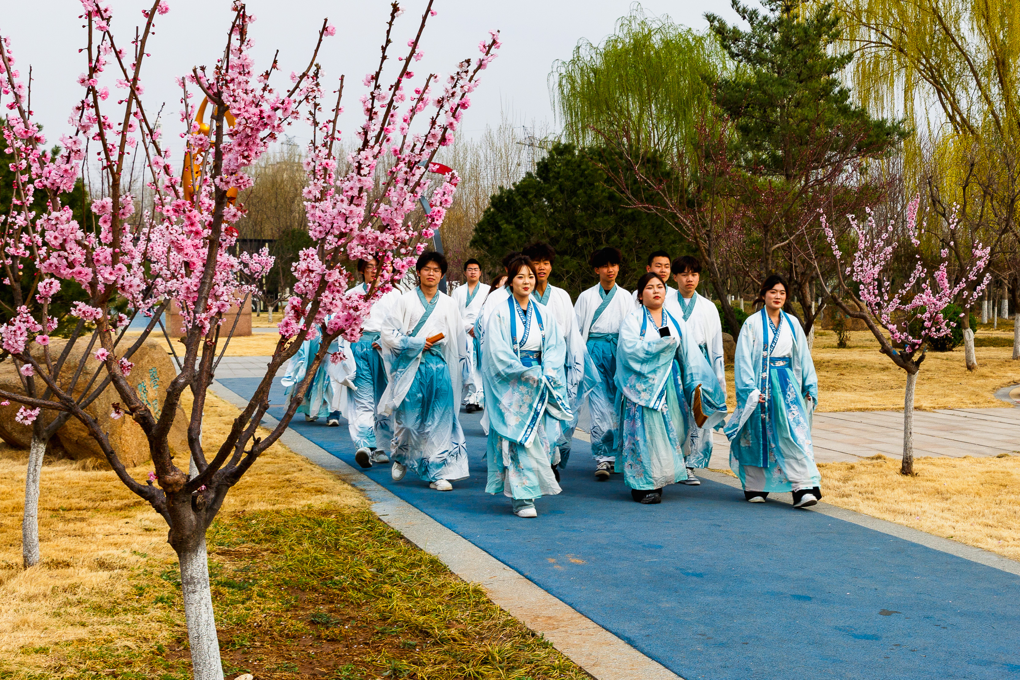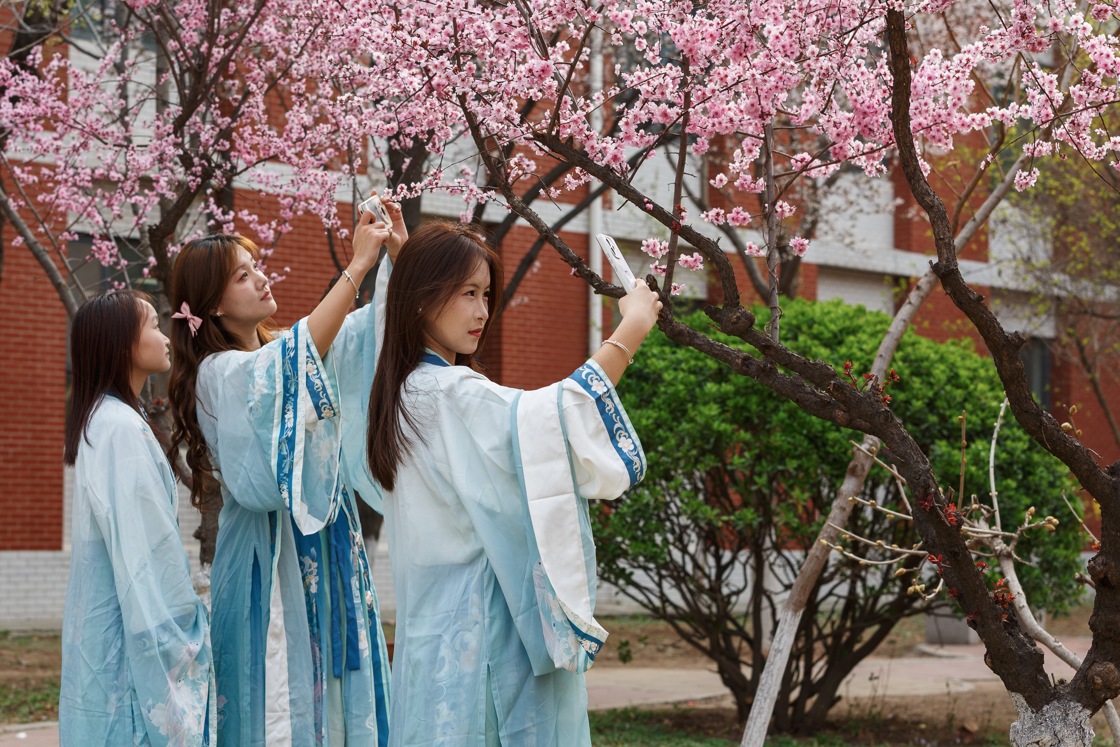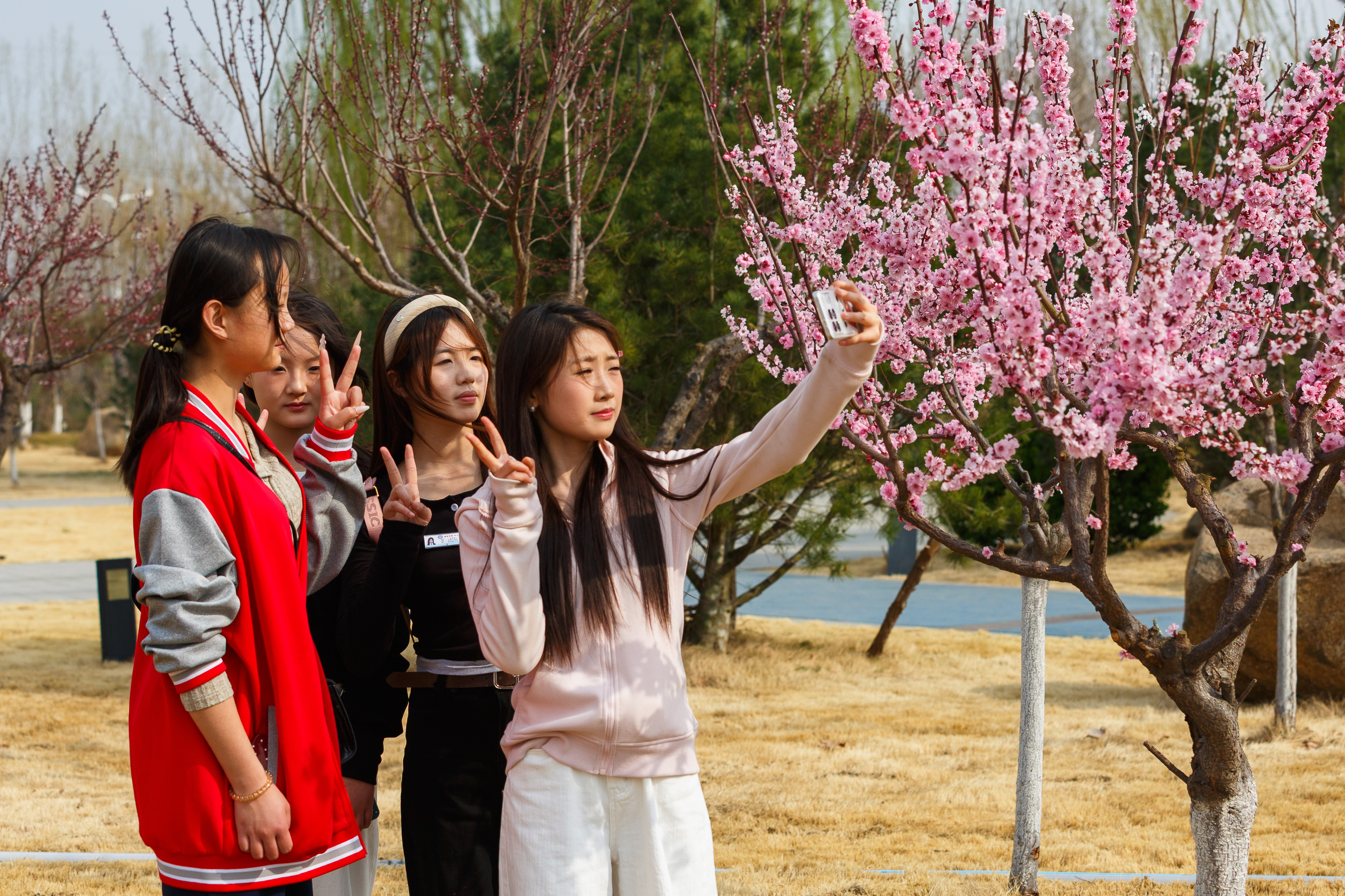 4月6日,位于淄博市淄川区的山东水利技师学院,学生们在校园内赏花游玩拍照。眼下,山东水利技师学院校园内的樱花、梅花、桃花、海棠花、梨花、紫叶李、玉兰花、连翘等竞相绽放,将校园妆扮成花的校园,满园春色。师生们行走在校园,仿佛置身花的海洋,尽情享受美好春天。