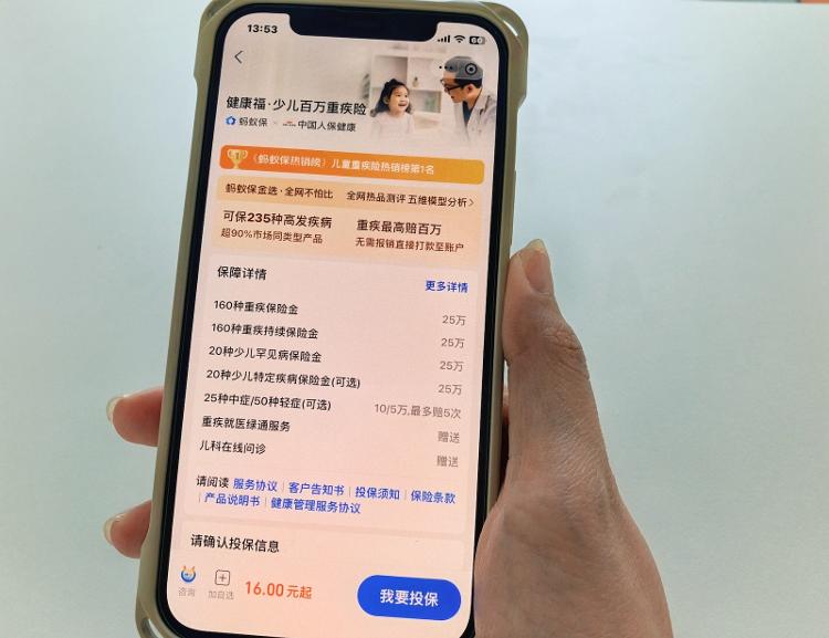 人保健康、招商信诺联合蚂蚁保上线“健康福”少儿百万重疾险