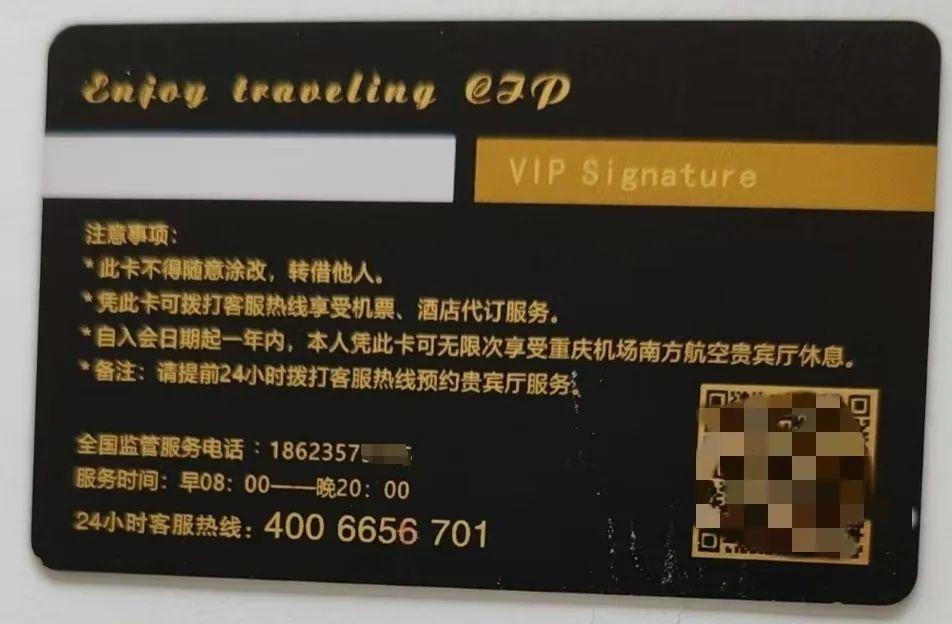 据此前报道,山西太原的石女士反映,2024年10月,她和丈夫从重庆江北机场乘坐飞机回太原时,有一个人身穿制服,自称是“南方航空工作人员”,向她推荐“尊享卡”服务,称充值1980元送1020元,共计3000元可用于购买机票,还可无限次使用江北机场的南航贵宾厅。
