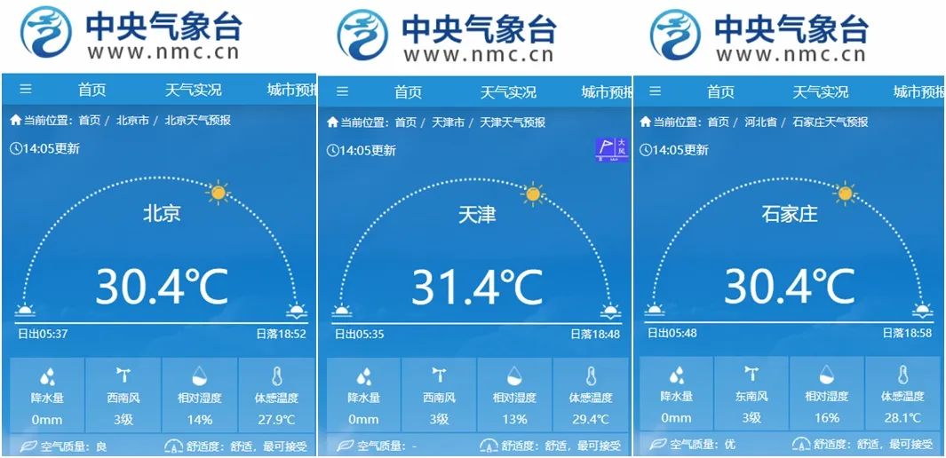 像北京、天津、石家庄今天午后气温均超过30℃,均为今年首个30℃+!