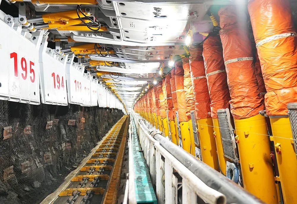 “我们每天产量在两万五千吨左右,月产量超过70万吨。”据营盘壕煤矿负责人介绍,2202综放工作面是营盘壕煤矿采煤接替的“主战场”,倾向长度420米,是700米以上大埋深、厚基岩复杂条件下兖矿能源首个超长综放工作面。