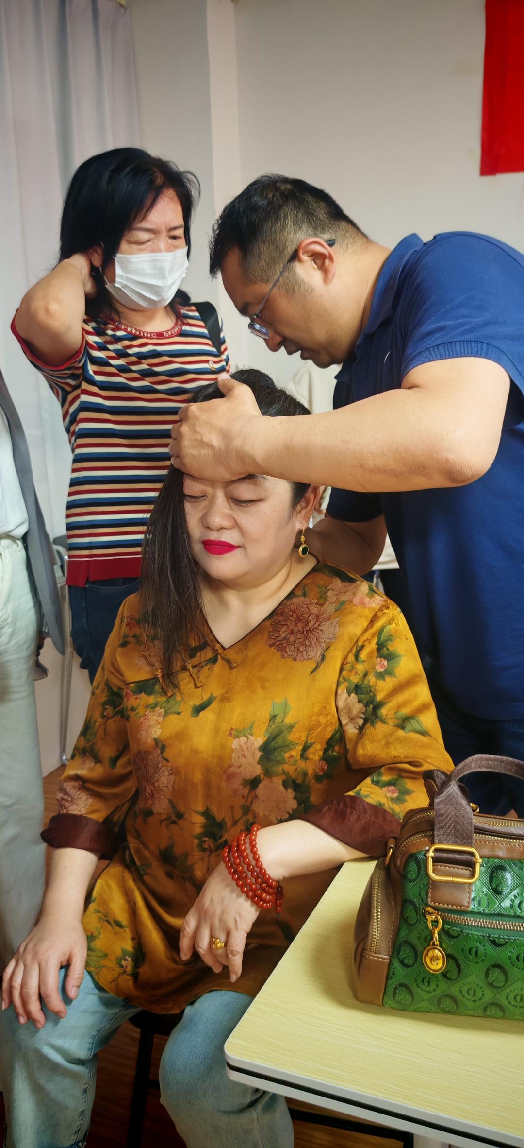 为了让学员们更好地掌握穴位按摩技巧,朱明月还进行了现场演示,并手把手指导学员操作。学员们积极参与,争相上台体验,在朱明月耐心细致的指导下,认真模仿每一个动作,亲身感受中医养生的魅力。通过实际操作,大家对针灸和穴位按摩有了更直观、更深入的理解。