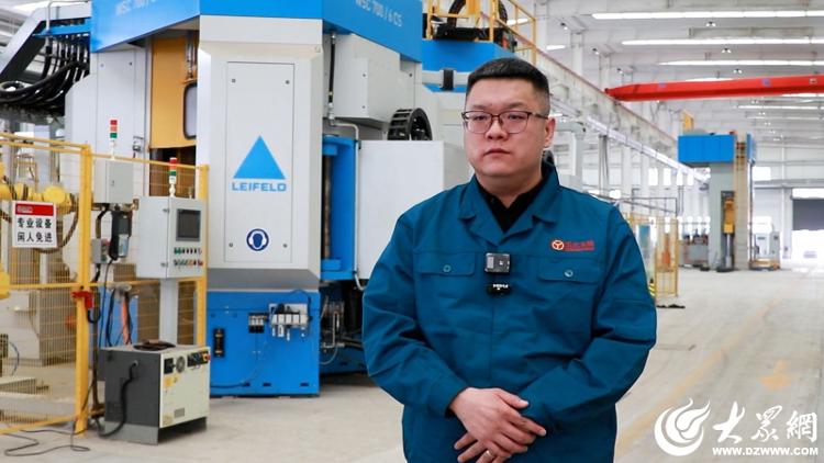 山东贞元汽车车轮有限公司总经理胡鹏飞接受记者采访