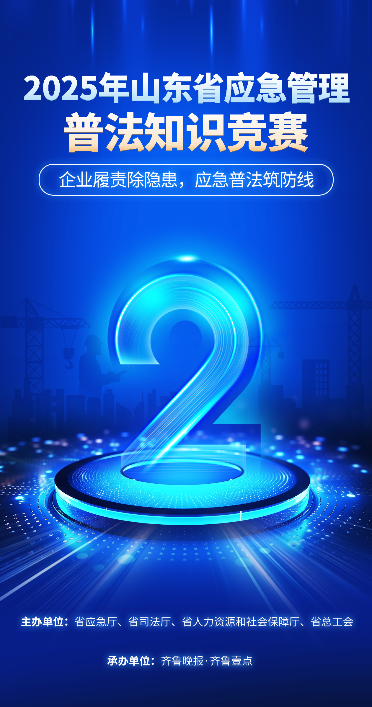 2025年山东省应急管理普法知识竞赛将于4月23日正式启动。本次竞赛由省应急厅、省司法厅、省人力资源和社会保障厅、省总工会联合主办,以“企业履责除隐患 应急普法筑防线”为主题,新增应急救援及个体防护相关的实操科目,旨在以赛促学、以学促用,强化企业员工风险防范意识和自救互救能力,推动应急管理向法治化、专业化转型,加速推进应急管理体系和能力现代化。
