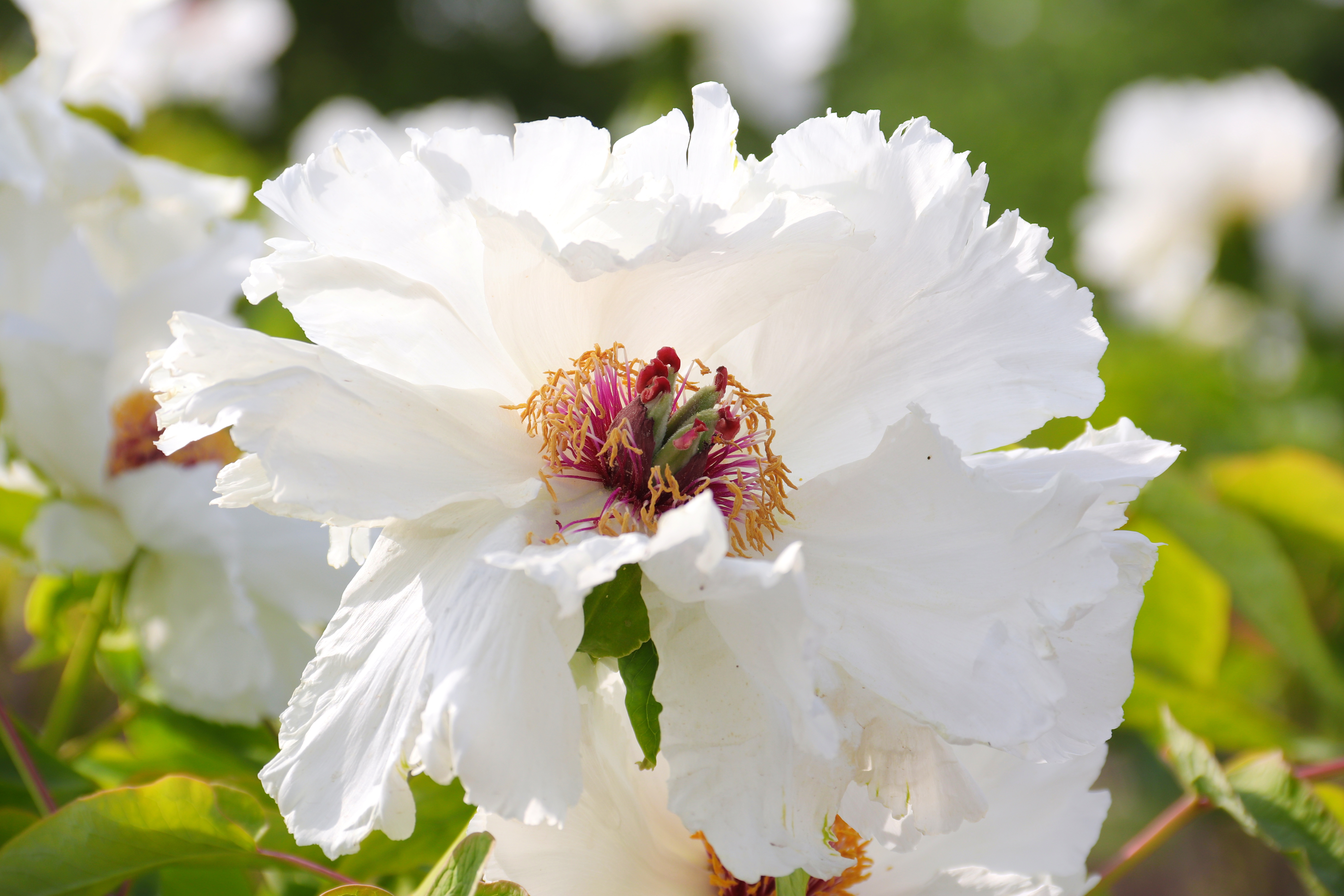 四月,正是牡丹花尽情绽放的绚烂季节。在菏泽牡丹园里,白牡丹宛如下凡的仙子,冰清玉洁,美得让人心醉。它们或孤傲独立,静静地展示着自己的高雅;或簇拥成团,仿佛在诉说着春日的浪漫。微风拂过,花瓣轻轻摇曳,散发着淡雅清幽的香气,那洁白如雪的花瓣,在阳光的映照下,宛如梦幻中的精灵。