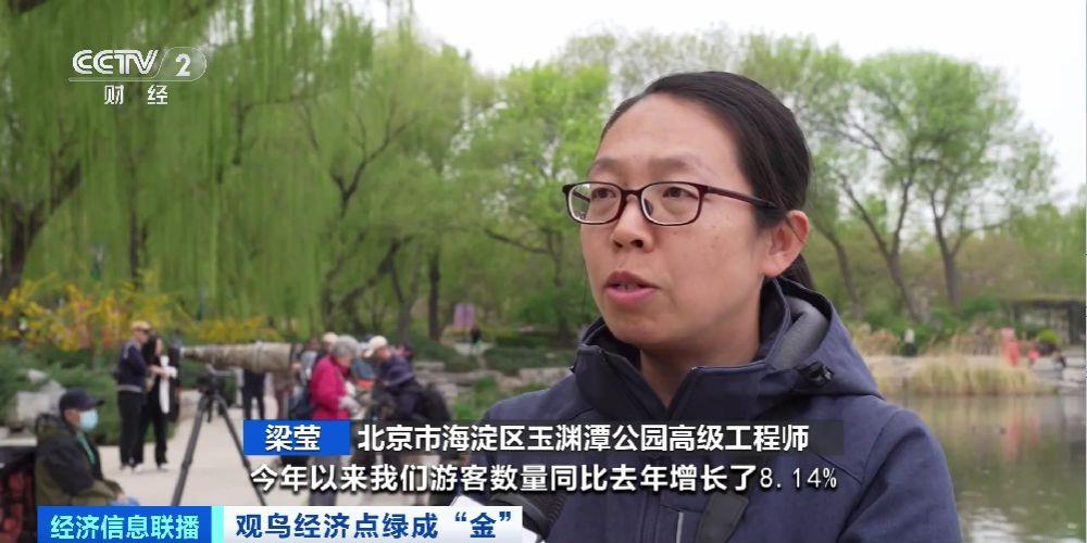 北京市海淀区玉渊潭公园高级工程师 梁英:今年以来我们游客数量同比增长了8.14%,在我们公园观鸟“打鸟”的人群每天至少都有一二百人。