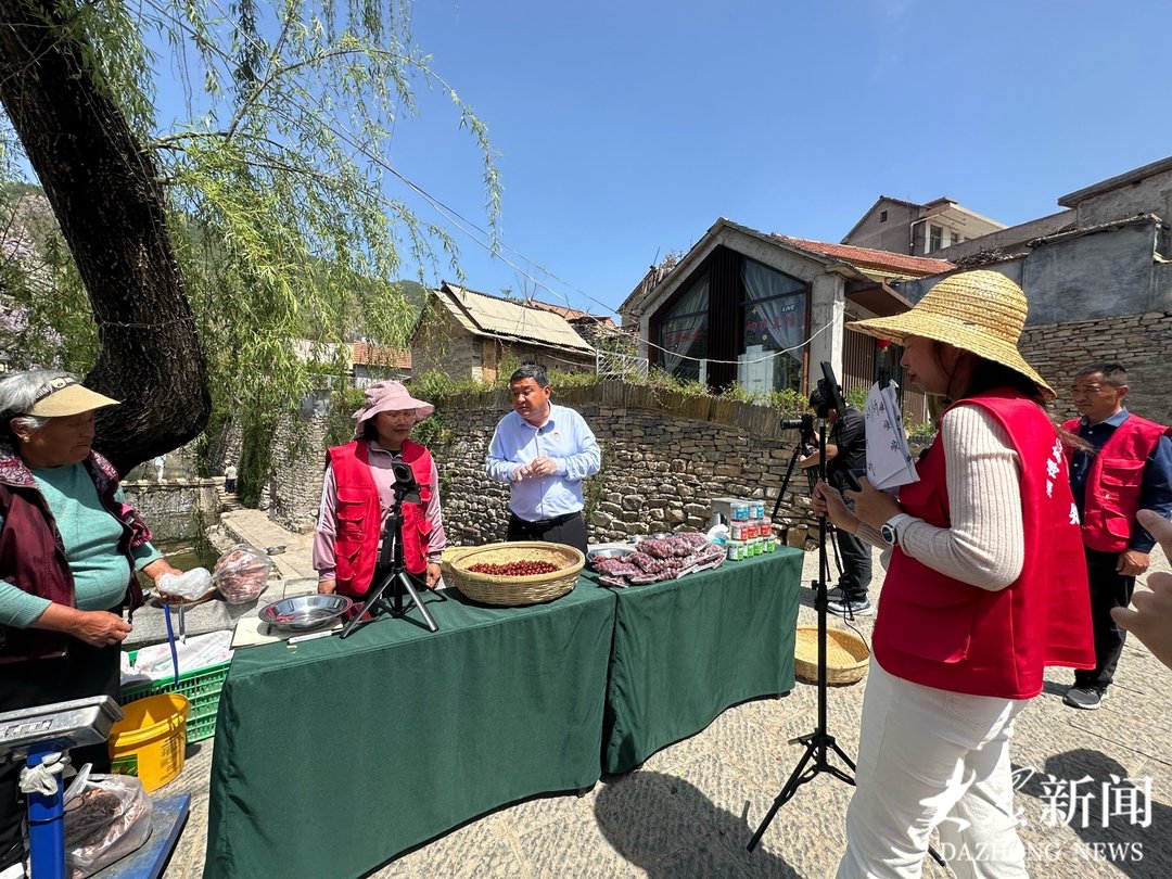 “这是我们村民从山上挖的野生蒲公英晒干的,这是自然生长的,无污染,半斤一单只有30单……”4月23日上午11点20分左右,在淄川区太河镇东东峪村,该村党支部书记朱全祥正在通过网络直播,替村民推介大枣、蒲公英、香椿等山里好品。