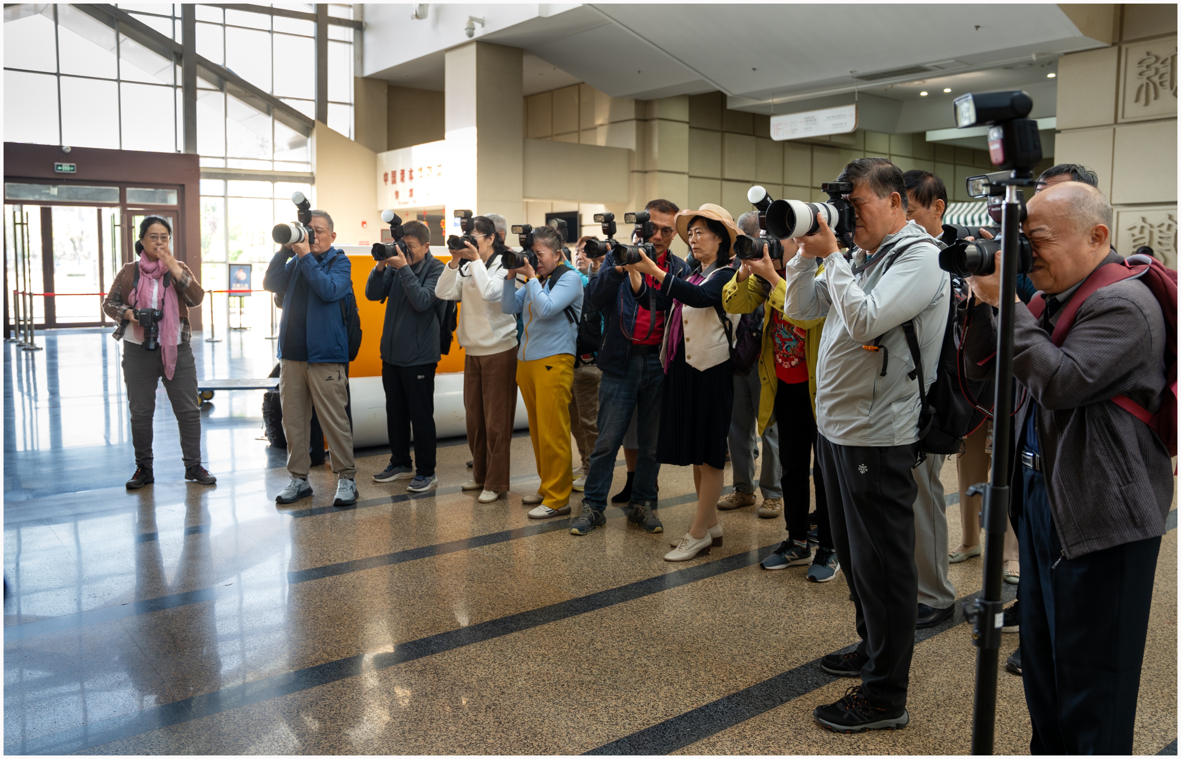 在拍摄实践中,学员们纷纷行动起来,穿梭于各个展厅之间,寻找着自己心仪的拍摄对象。有的学员专注于拍摄珍贵的古籍善本,试图通过细腻的曝光展现出古籍的质感与岁月的痕迹;有的则被复原的课文场景所吸引,精心调整参数以捕捉那充满故事性的瞬间;还有的学员对馆内独特的建筑结构与光影效果产生了兴趣,运用所学的曝光知识努力创造出富有艺术感染力的作品。