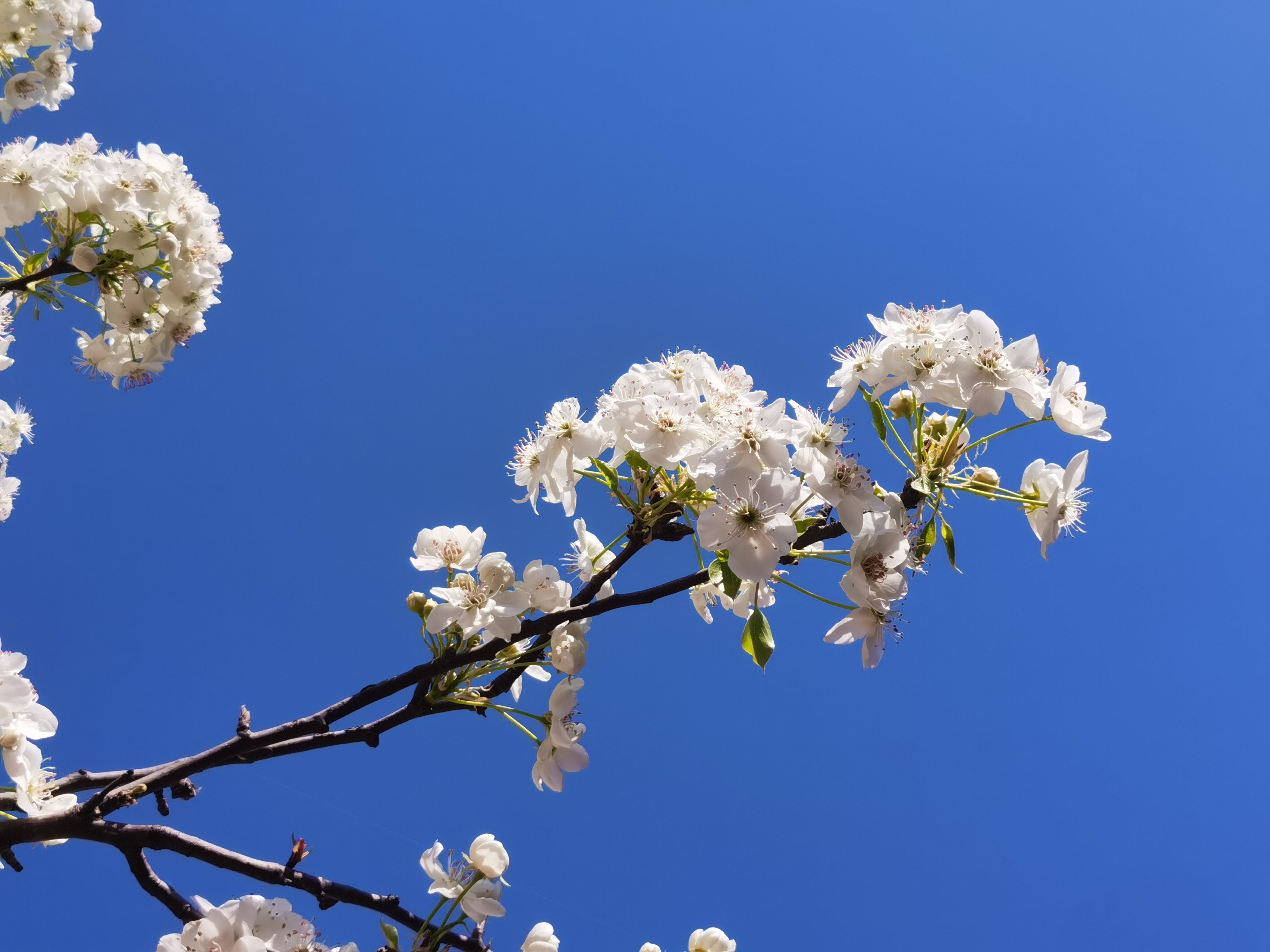 晴空万里,春风拂面,出门远足,梨花盛开,于是乎以蓝天为布,手机为笔,梨花为画,留下春日美景记忆。