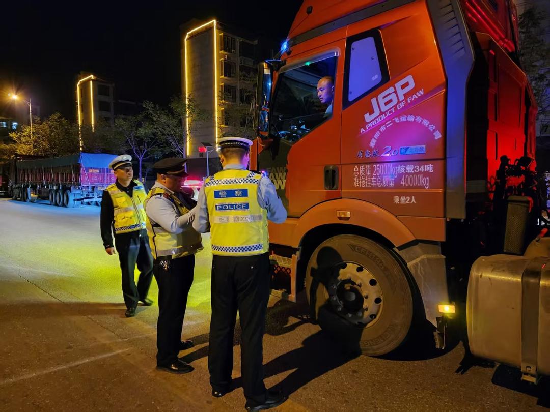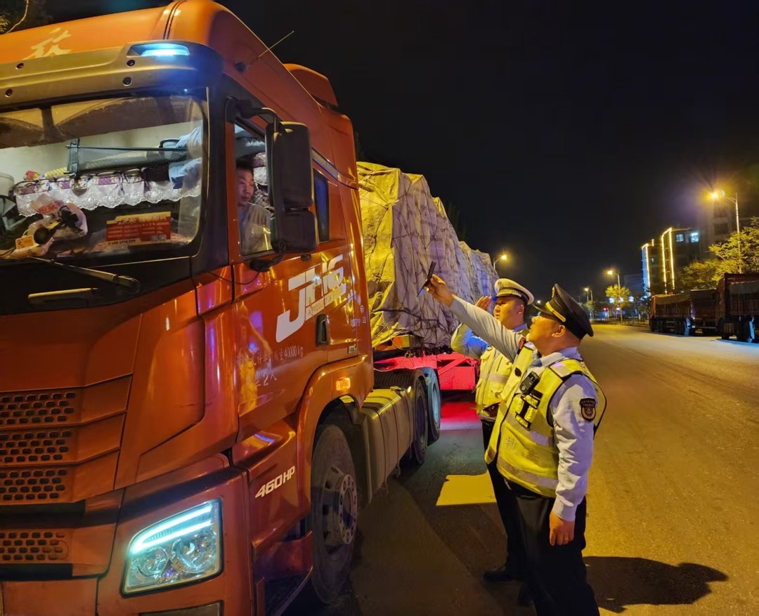 随着“五一”假期临近,群众出行需求激增,公路货运量同步攀升,超限超载运输风险持续走高。为有效消除道路交通安全隐患,进一步筑牢道路交通安全防线,为广大人民群众创造安全有序的通行环境,4月23日晚,市交通运输综合执法支队联合公安交警部门在常态化开展联合执法的基础上,开展全市“平安护航”夜间治超专项行动,打击严重超限超载行为,维护货运运输市场秩序,保障节日期间道路交通安全畅通。