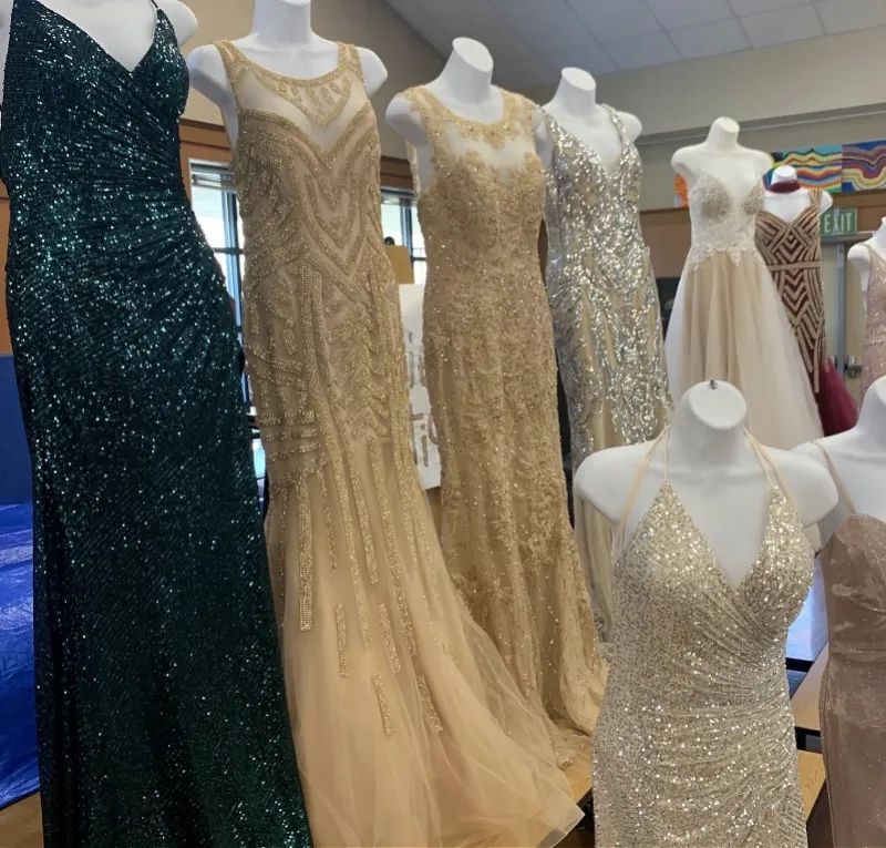 美国加利福尼亚州首府萨克拉门托市一家婚纱礼服店铺的陈列。受访者供图