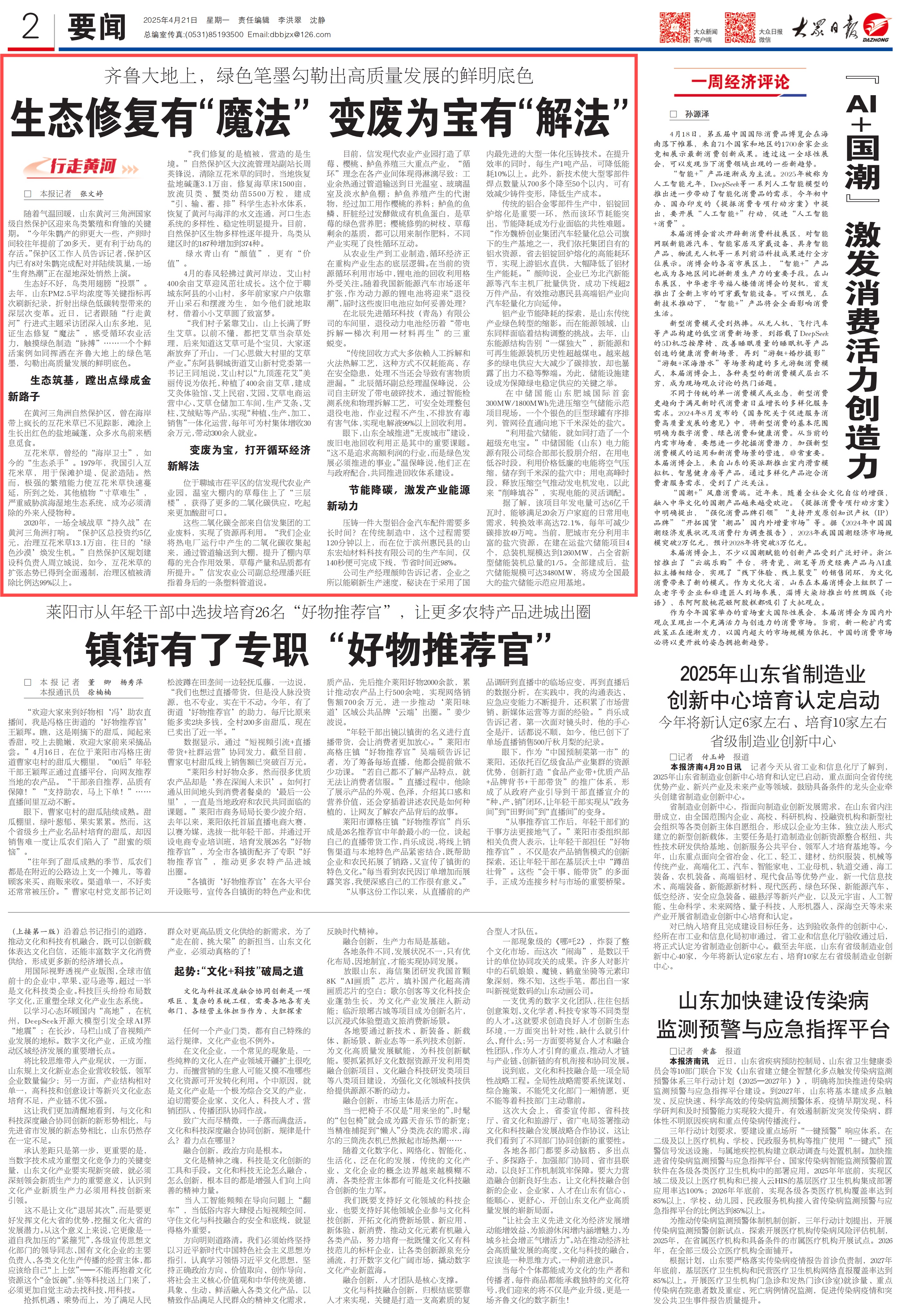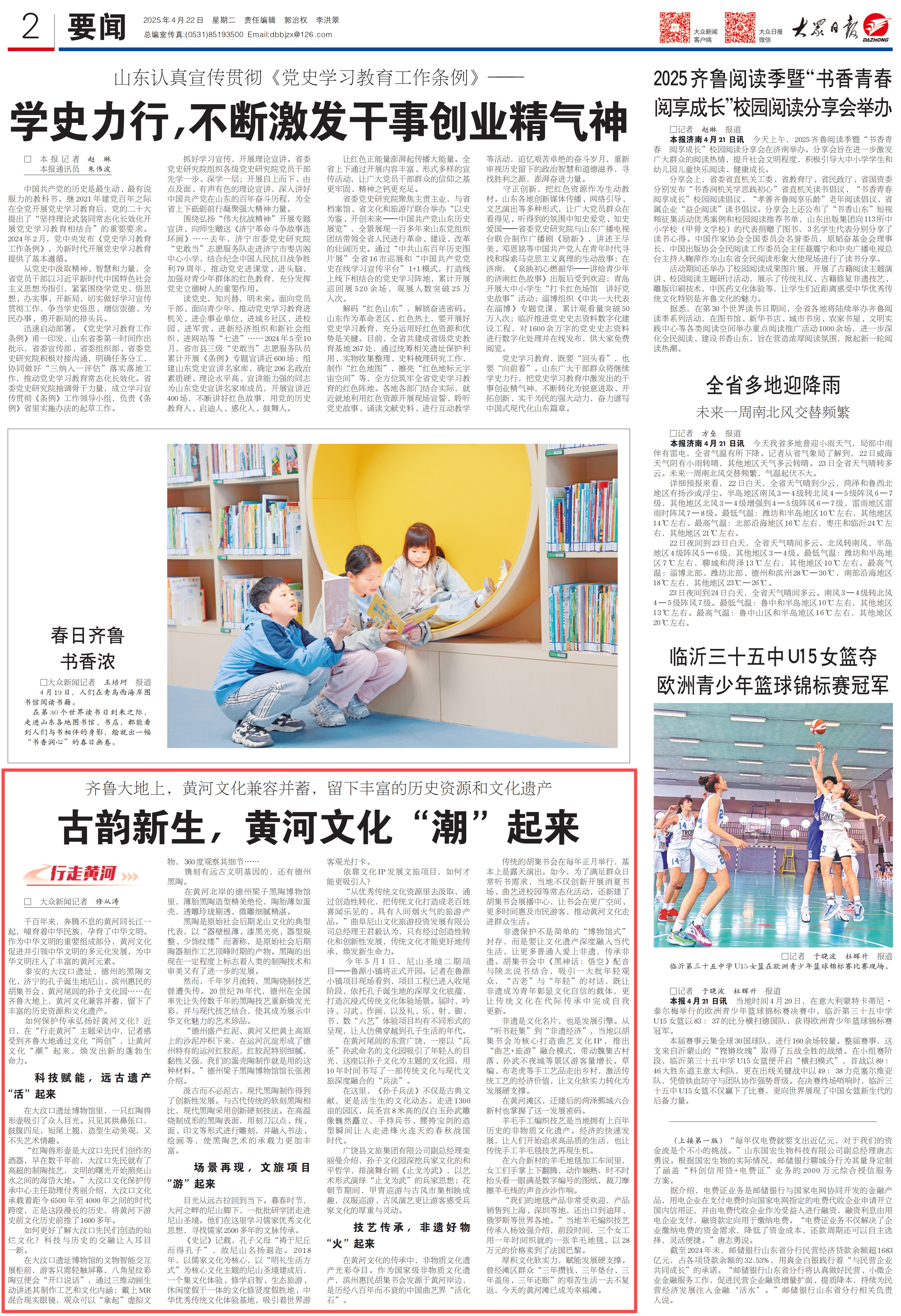 4月22日,2版要闻刊发《古韵新生,黄河文化“潮”起来》,报道大汶口遗址博物馆用科技将远古遗产活起来。详情点击这里——《古韵新生,黄河文化“潮”起来》