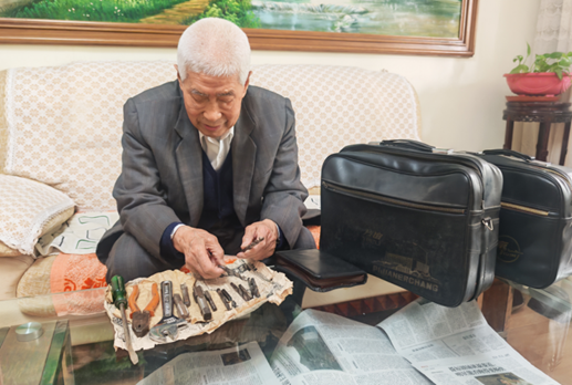 打开黯黑色的旧皮箱,映入眼帘的是汽车维修工具和记事本。93岁离休干部于道明坐在木椅上,摊开一本本笔记和荣誉证书,老人用放大镜对准午日的光束,笔记里霎时折射出七十多年前潍县上空的漫天飞雪。