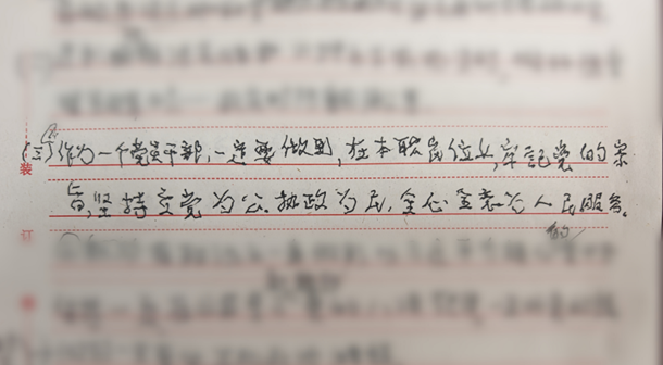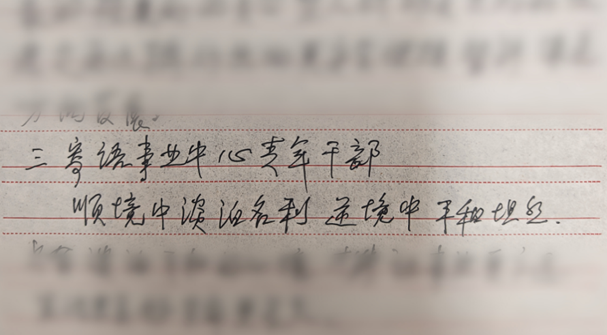 最后在谈起送给事业中心青年干部的寄语时,他们写道:顺境中淡泊名利,逆境中平和坦然。坚持立党为公、执政为民,全心全意为人民服务。