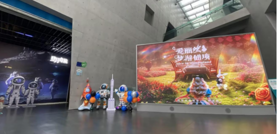 活动现场,“VISION WALK幻旅之门”行浸式XR大空间体验店吸引了不少游客和市民前来体验。“剧本VR”“行浸式XR”“虚拟融合”无论哪一个关键词都敲击着围观者的好奇神经。与3D电影、游乐场VR游戏体验相比,“行浸式XR大空间”带来的不仅是技术上的革新,通过AI+VR技术构建起虚实融合的沉浸式体验空间,让游客可以在同一时空内自由切换人生剧本。而《登月奇旅》《一千零一夜》《永远的盛唐》等七大影片,除娱乐体验外,还兼具科普教育、文化传播等功能,成为优质的校外科技教育基地。