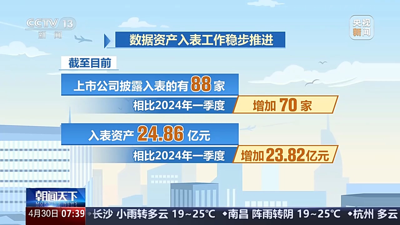 国家数据局相关负责人介绍,以场景化加快牵引价值化,数据要素赋能作用不断凸显,数据资产入表工作稳步推进。截至目前,上市公司披露入表的有88家,入表资产24.86亿元,相比2024年一季度,分别增加70家和23.82亿元。