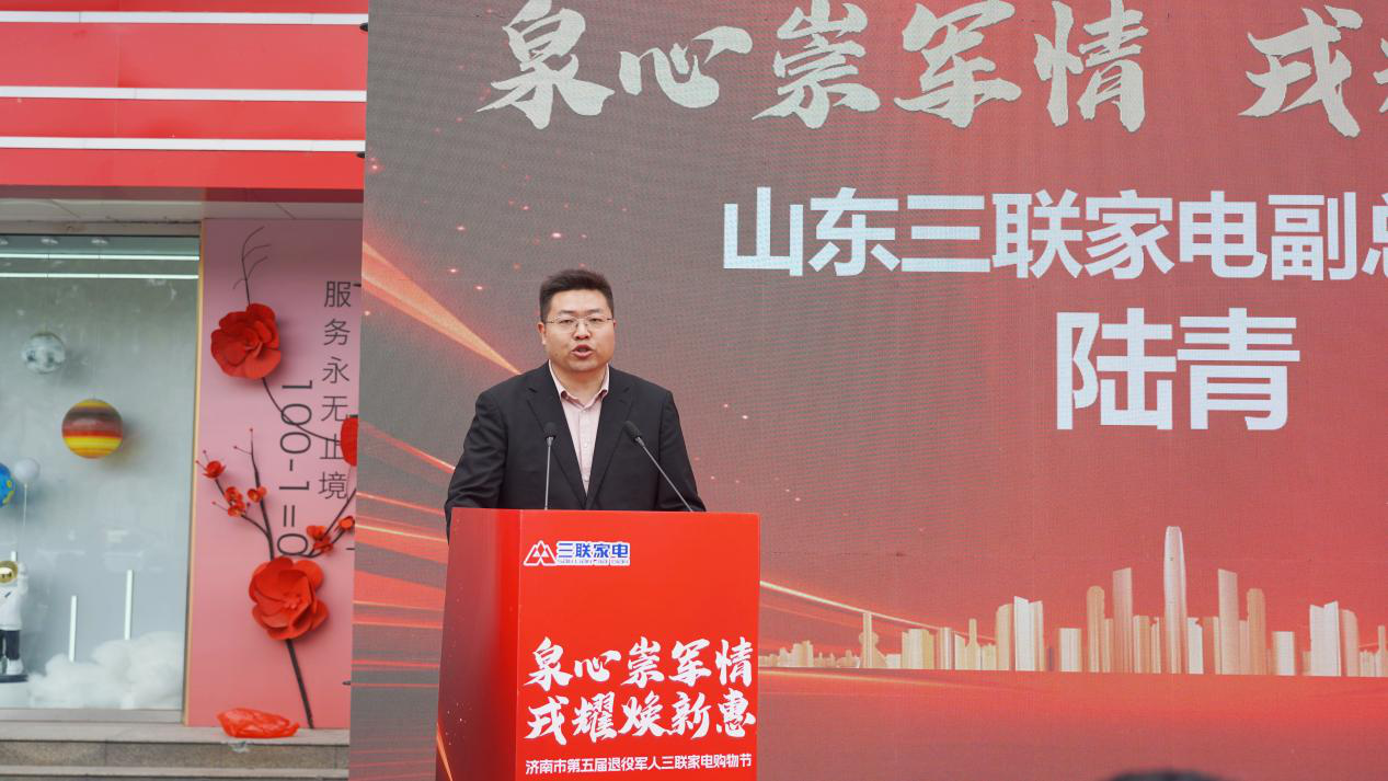 4月30日上午,“泉心崇军情·戎耀焕新惠”济南市第五届退役军人三联家电购物节启动仪式在丰利大厦广场(三联家电泉城路店)隆重举行。