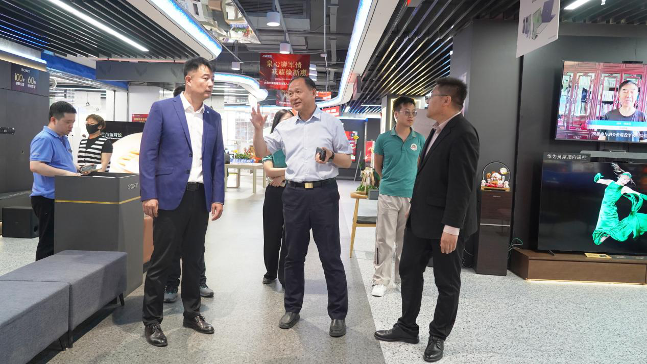 在热烈的掌声中,济南市退役军人事务局党组成员、退役军人服务中心主任王绍虎、济南市关爱退役军人基金会理事长魏巍、历下区退役军人服务中心综合部部长叶家栋、泉城路街道党工委委员,副主任陈传友、三联家电副总经理陆青等领导共同上台启动购物节。随着倒计时“3、2、1”的结束,象征政企携手的能量汇聚,标志着本次惠军家电焕新盛宴正式拉开帷幕。启动仪式后,与会领导及嘉宾前往三联家电门店参观指导,实地体验退役军人专属服务场景。