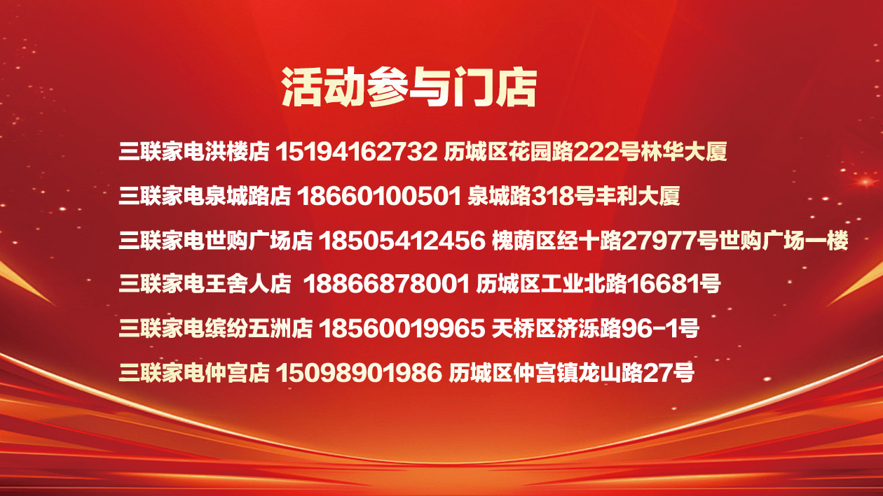 参与方式:退役军人及家属凭有效证件至济南三联家电各门店享专属优惠