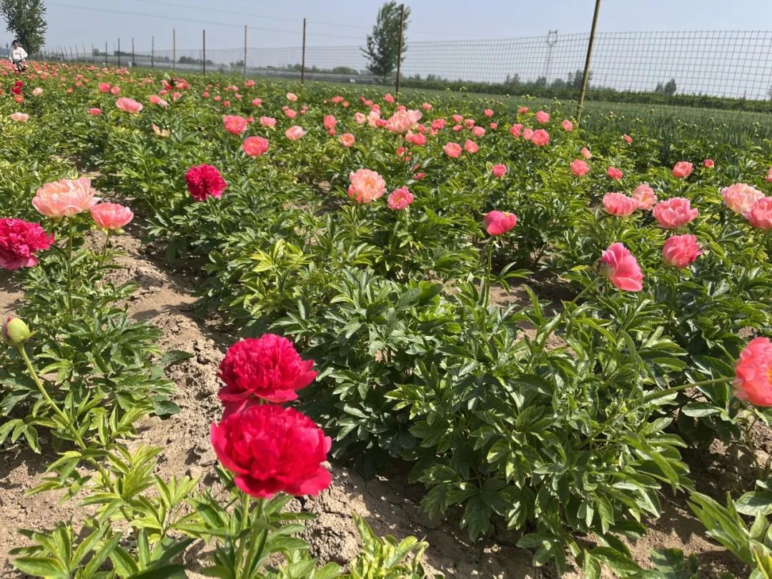 菏泽鲁西新区吕陵镇芍药种植基地面积达2000余亩。时值盛花期,千亩花海如霞似锦,粉白相间的芍药竞相绽放,构成一幅绚丽多彩的田园画卷。