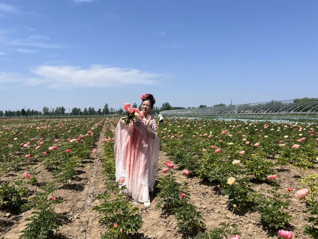 游客漫步花间,拍照打卡,感受“花开吕陵”的独特魅力。吕陵镇党委书记马明胜表示:“芍药是吕陵的‘金名片’,我们以花为媒、以节会友,推动农文旅深度融合,让游客感受乡村生态之美,也为农户增收开辟新路径。”