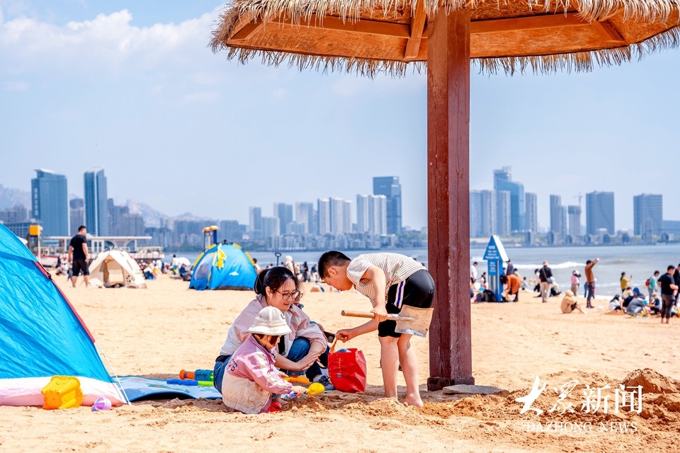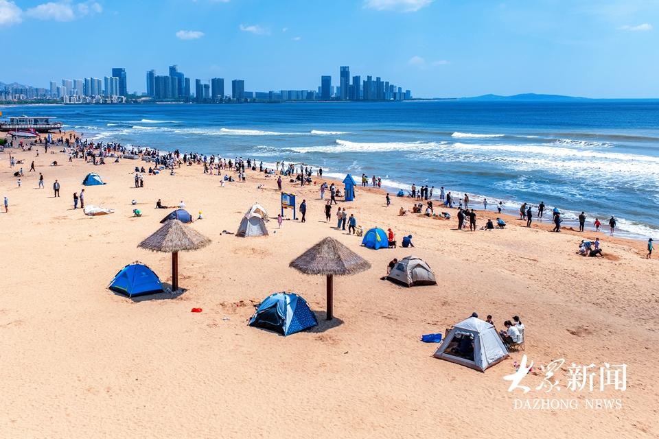 当日是“五一”假期的第三天,青岛西海岸新区天气晴好。碧海蓝天与银滩金沙相互映衬,海水浴场等沿海景区成为游客热衷的打卡胜地,不少人们在海边搭起帐篷露营,生态之美与人文之趣,勾勒出一幅迷人的假日画卷。