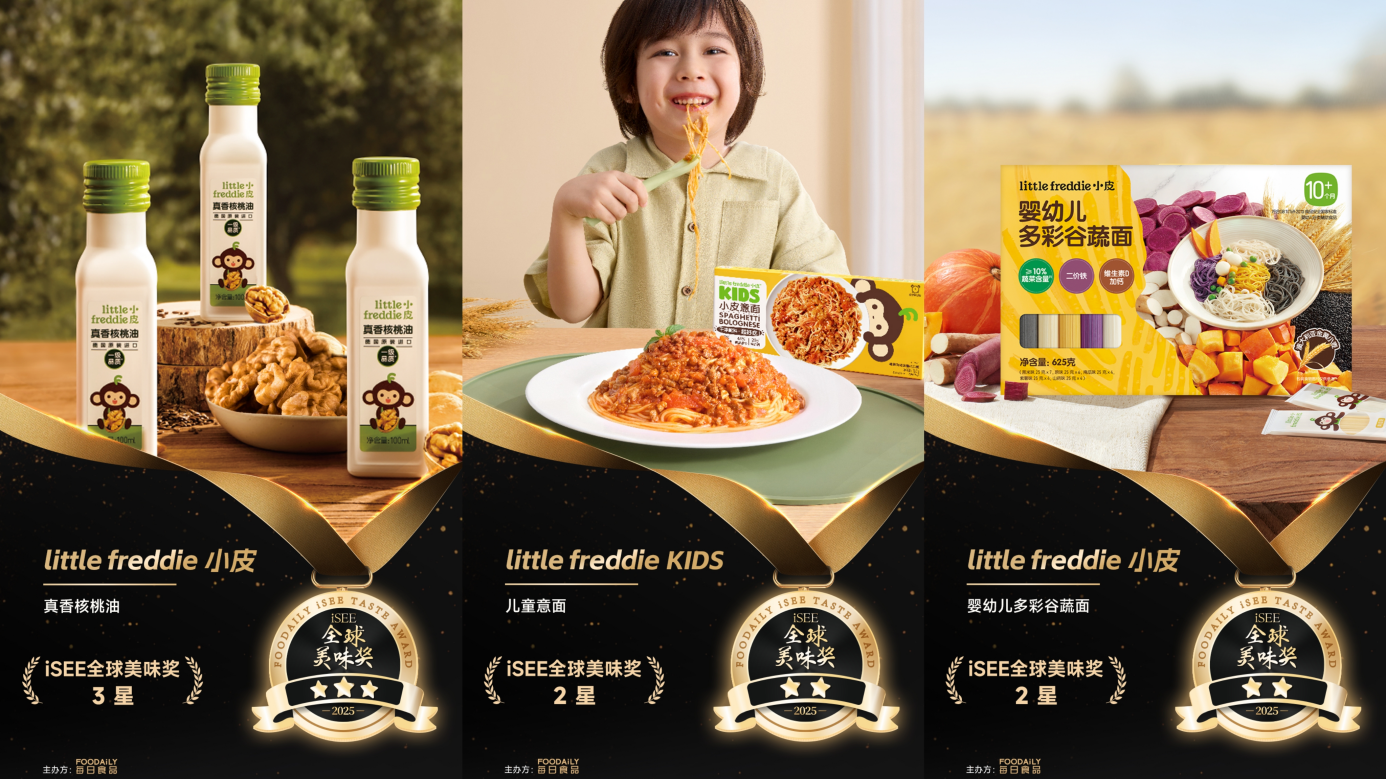 近期,第七届iSEE全球奖创新盛典暨颁奖典礼在上海国家会展中心如期举行,该奖项被誉为食品界的“奥斯卡”。Little Freddie小皮(以下简称“小皮”)从全球4678个案例中脱颖而出,斩获iSEE全球食品创新奖-产品&品牌类银奖,并同步摘得全球食品设计奖TOP30、全球创新奖TOP 100、全球美味奖3星与2星等多项殊荣,体现出行业与市场高度认可小皮产品力的标杆意义。
