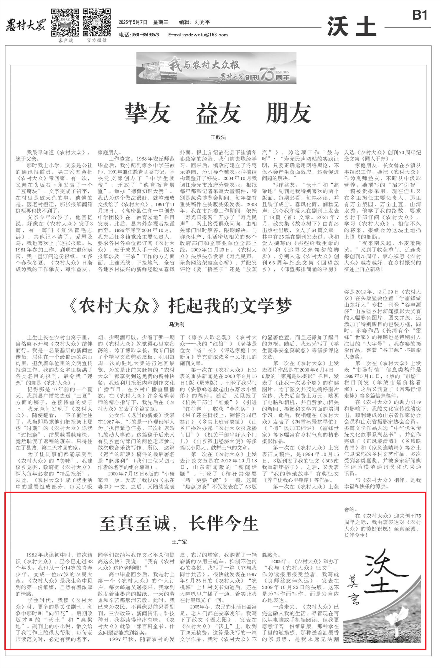 在《农村大众》迎来创刊75周年之际,我由衷表达对《农村大众》的美好祝愿!至真至诚,长伴今生!