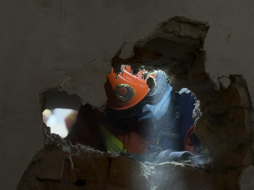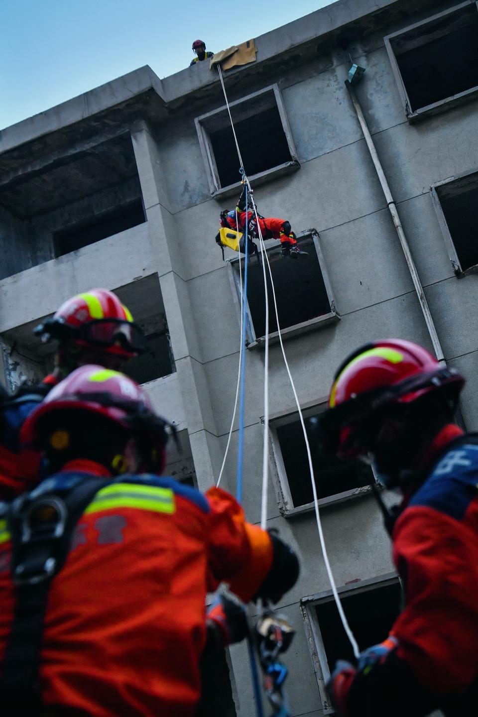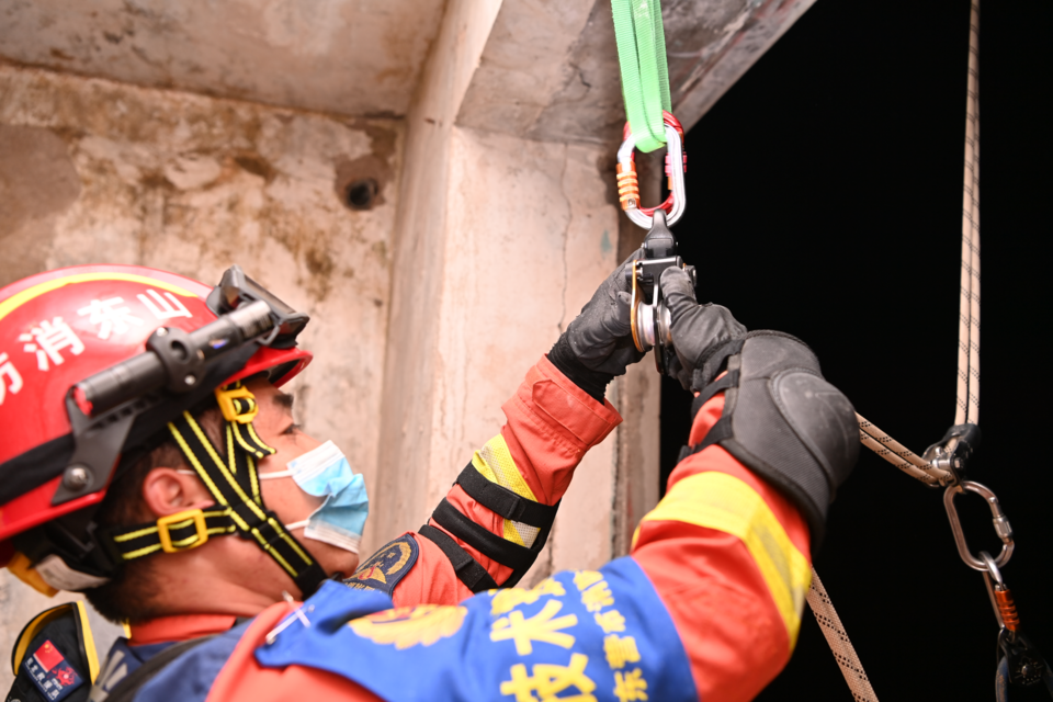 演练设置“绳索人装转运”“狭小空间横向破拆”“向上安全破拆”等高难度科目。在最为复杂的“狭小空间破拆”科目中,救援人员面对“危楼”,先用支撑套件固定建筑结构,随后使用微型破拆工具在混凝土墙体开辟出直径80厘米的生命通道,成功营救出“被困人员”。