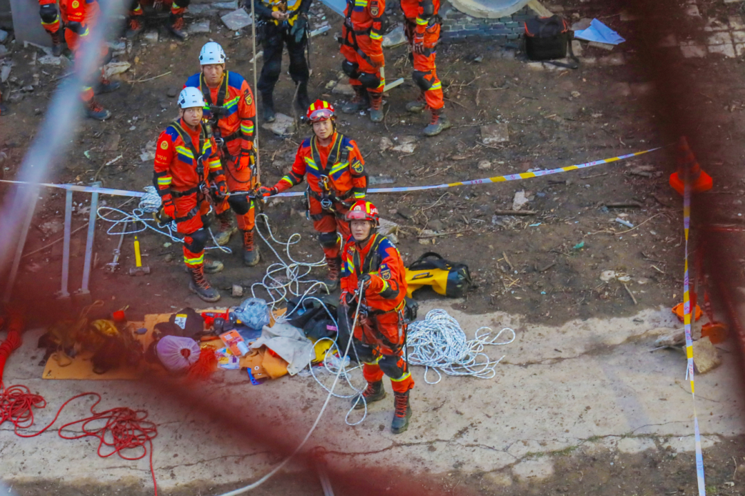 演练科目结束后,张其峰仍在反复检查救援工具观察演练现场,和队友进行复盘总结,随时准备进行下一场“救援”。“每一次演练都是真实战场的预演”,他擦拭着带有岁月痕迹的头盔,目光掠过远处模拟废墟上飘扬的队旗。