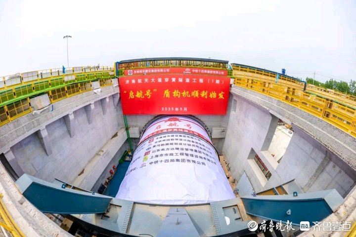 5月9日上午,随着开挖直径15.06米的“启航号”盾构机刀盘缓缓转动,航天大道穿黄隧道工程南线盾构机顺利始发,标志着项目建设正式进入盾构掘进施工阶段。