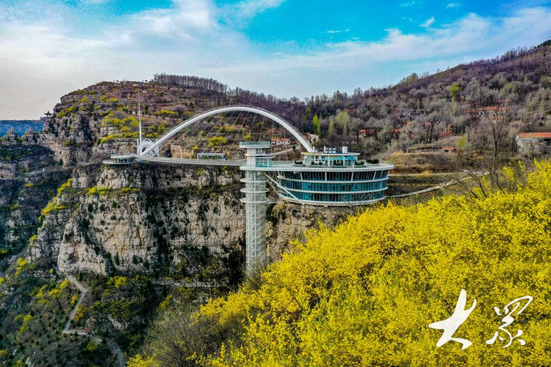 潭溪山高空玻璃桥,为世界首例无背索斜拉弧形玻璃桥。