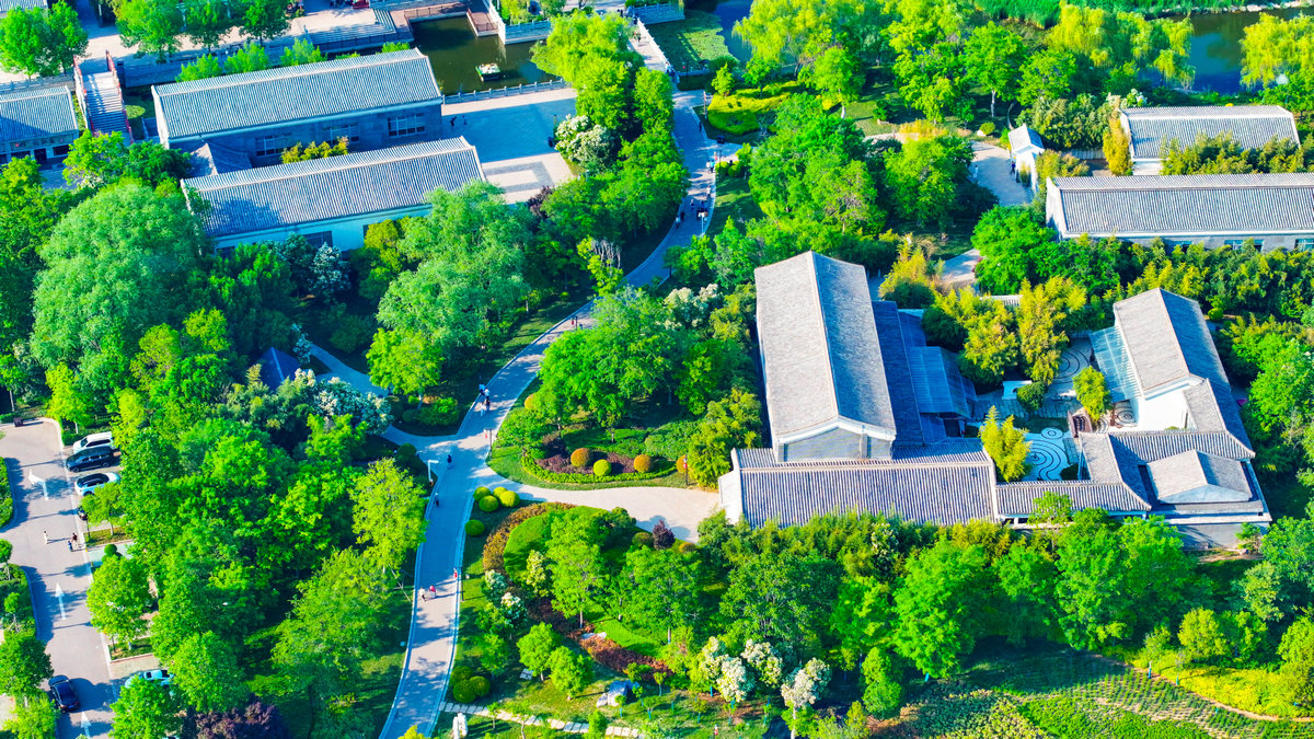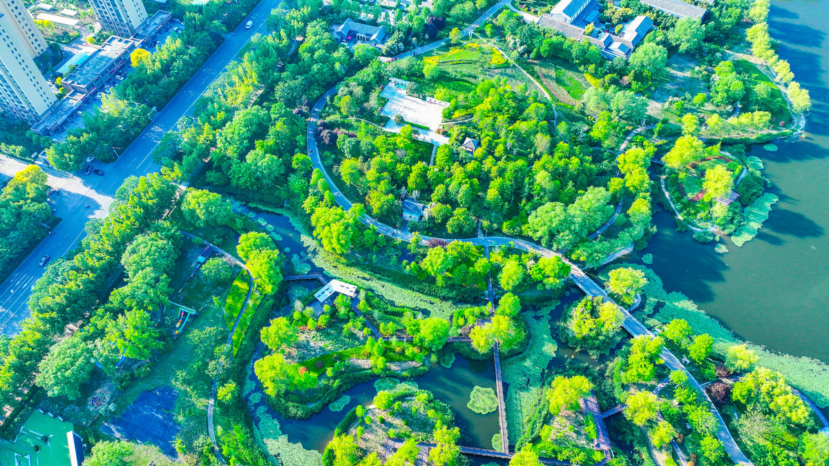 当无人机的螺旋桨在暮春的宁阳复圣文化园的上空缓缓转动,一幅如梦如幻的生态画卷在眼前徐徐展开。从高空俯瞰,复圣文化园宛如一颗镶嵌在大地上的璀璨明珠,散发着独特而迷人的生态魅力。复圣文化园的水域,无疑是这幅画卷中最为灵动的一笔。湖泊周边,垂柳依依,细长的柳枝低垂着,轻抚着水面,泛起一圈圈涟漪。在无人机的视角下,这片水域像是一条灵动的蓝色丝带,缠绕着园区的各个角落,为整个园区带来了灵动的气息和盎然的生机。沿着水域蔓延开来的,是广袤的绿植景观。大片的草坪犹如绿色的地毯,平整而柔软,一直延伸到远方。各种树木错落有致地分布在园区内,高大的乔木遮天蔽日,为人们提供了一片片清凉的绿荫。在高空俯瞰,这些树木像是一把把巨大的绿伞,撑起了一片生态的天空。不同种类的树木,有着不同的色彩和形态,有的翠绿欲滴,有的金黄灿烂,有的则呈现出深沉的墨绿,它们相互交织在一起,形成了一幅层次分明的绿色拼图。园区内古色古香的亭台楼阁,散发着浓厚的历史文化气息。这些建筑在绿树繁花的掩映下,若隐若现,宛如世外桃源中的仙境。无人机从高空俯瞰,能清晰地看到建筑与生态景观相互融合的美妙画面,仿佛时间在这里静止,传统与现代、人文与自然达到了完美的统一。宁阳复圣文化园,以其独特的生态之美,吸引着众多市民前来探寻。当人们漫步在园区的小径上,呼吸着清新的空气,感受着大自然的拥抱,仿佛能忘却一切烦恼。而从无人机高空俯瞰,更能领略到它的全貌,感受到这片生态家园的宏大与细腻。它不仅是休闲娱乐的好去处,更是人们心灵的栖息之所,让人们在繁忙的生活中,找到了一片与自然和谐共处的净土。