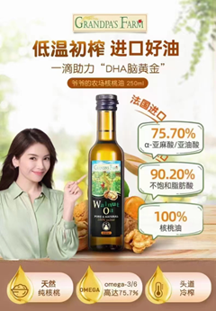 法国原装进口核桃油:法国传统冷榨工艺,30℃低温压榨,天然营养,100%核桃油,5次筛选,成熟野生山核桃,补充“DHA脑黄金”大脑发育快人一步!