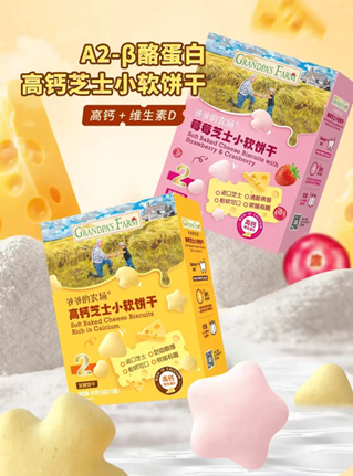 芝士小软饼干:三段式低温烘烤,软糯不上火,德国A2β酪蛋白乳粉,澳洲进口干酪,高钙高蛋白,云朵般松软不掉渣。