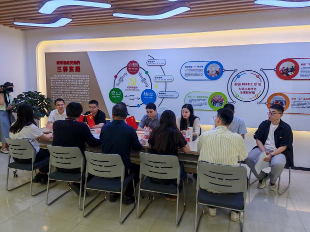 与会人员先是到三郭社区邻里中心墙绘现场进行参观指导。本次墙绘活动是三郭社区邻里中心改造升级、增进社区邻里和谐氛围的关键举措之一,由济宁职业技术学院艺术与设计系的大学生志愿者志愿承担。双方表示,本次合作,既用彩绘生动演绎了社区邻里温暖场景,增进了和谐氛围,也向大学生提供实践机会,为双方合作共建打下了良好基础。