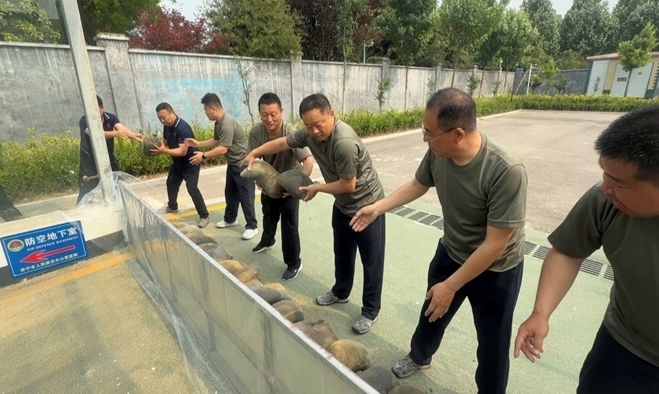 在防汛演练中,模拟因持续强降雨导致城区内涝,区国防动员中心迅速启动应急预案,组织应急抢险队赶赴现场,利用防汛沙袋、挡水板快速有效完成工程口部封堵。此次防汛演练,有效检验和提升了防汛实战能力。