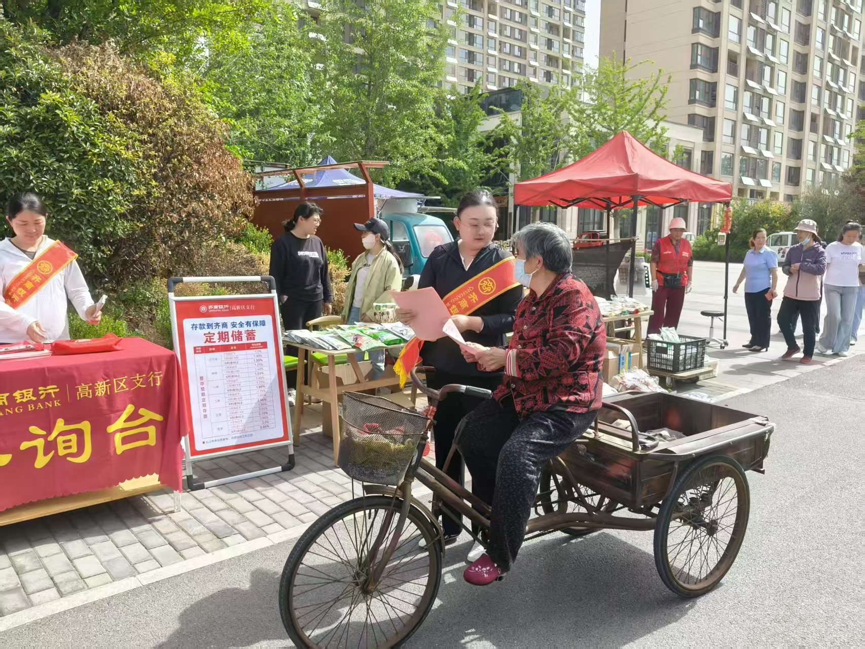 活动现场,反诈宣传员向居民发放反诈宣传单页,用真实案例普及电信诈骗的常见手段和套路,用心用情守好居民的“钱袋子”。义诊摊位,医务工作者为居民分析遇到的健康问题,提供合理建议。农副产品摊位,居民挑选着新鲜的瓜果蔬菜,收获颇丰。爱心理发、磨剪子等摊位前,志愿者仔细问询居民需求,并拿出“看家绝活”。