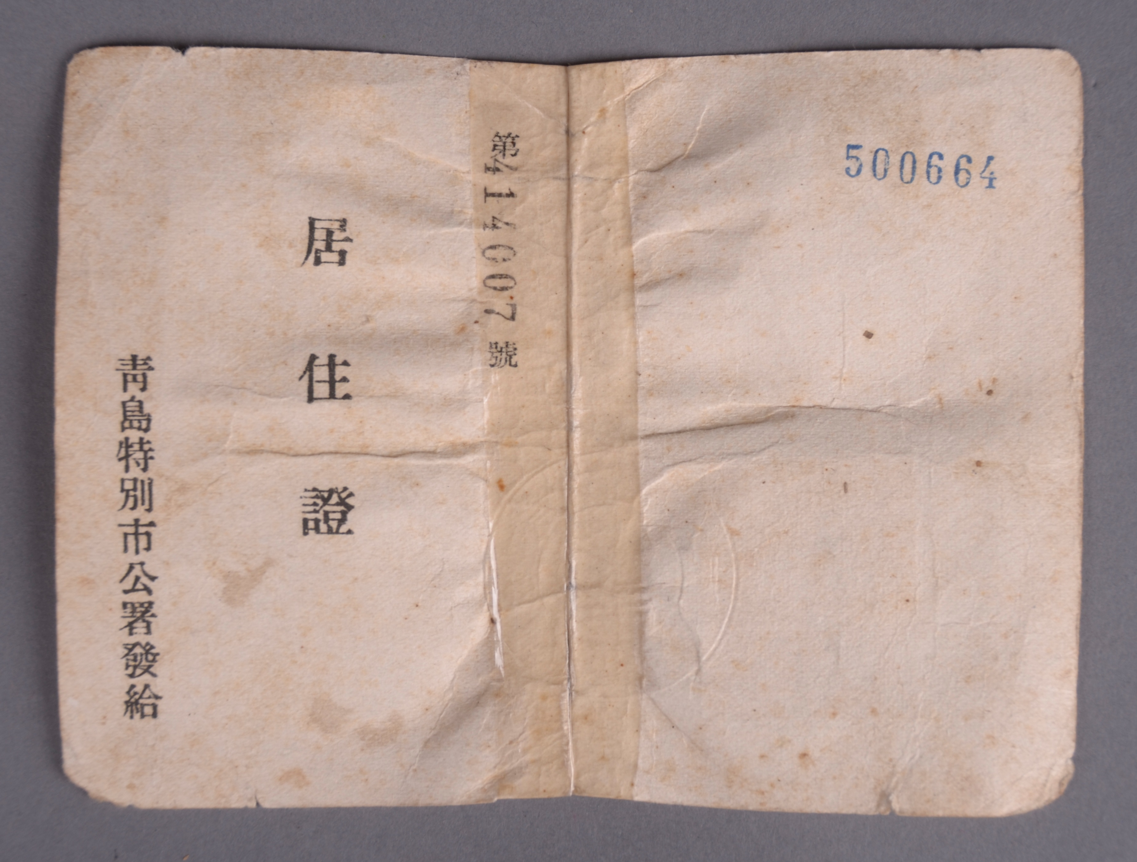 青岛博物馆展出的李研吾的居住证。