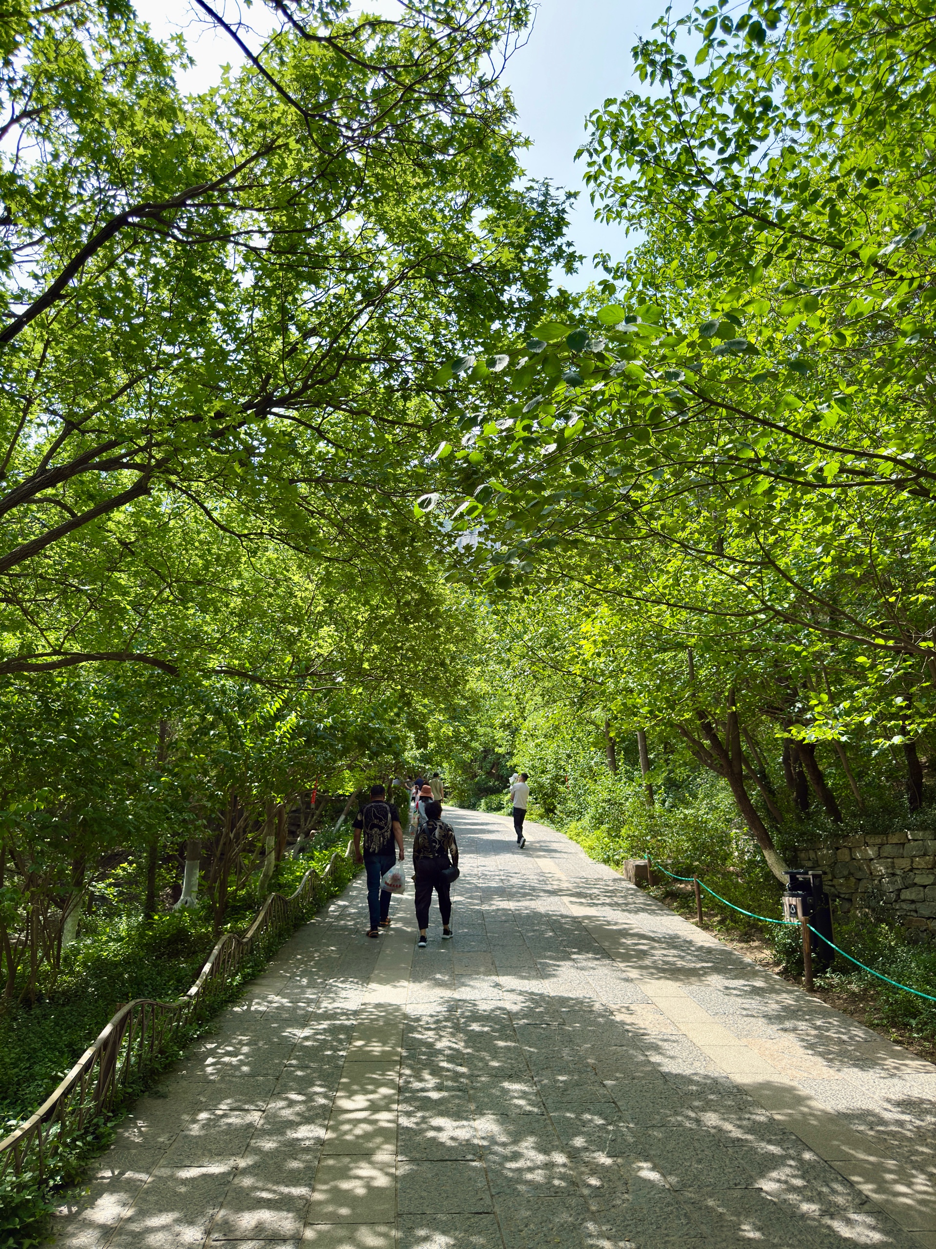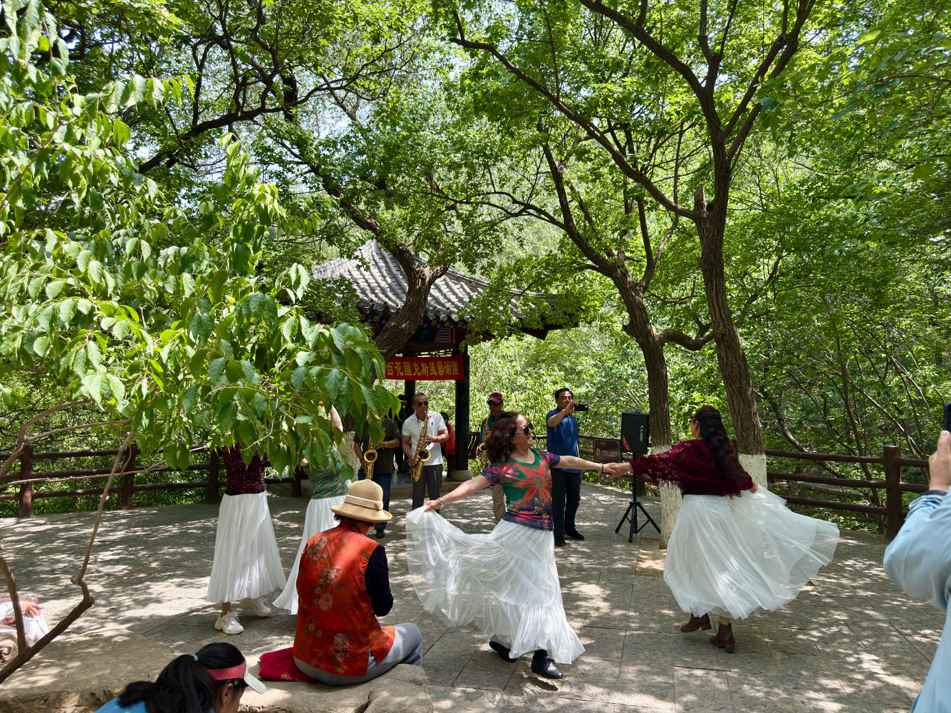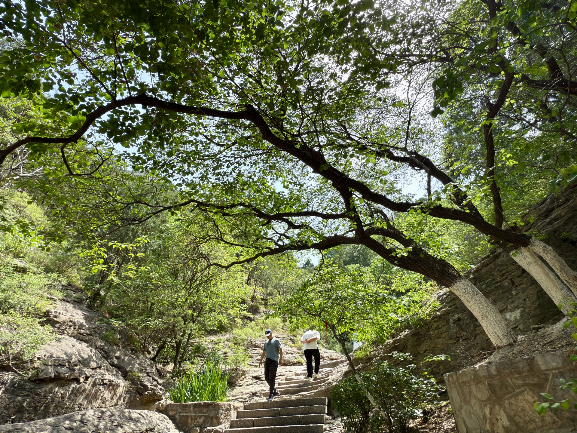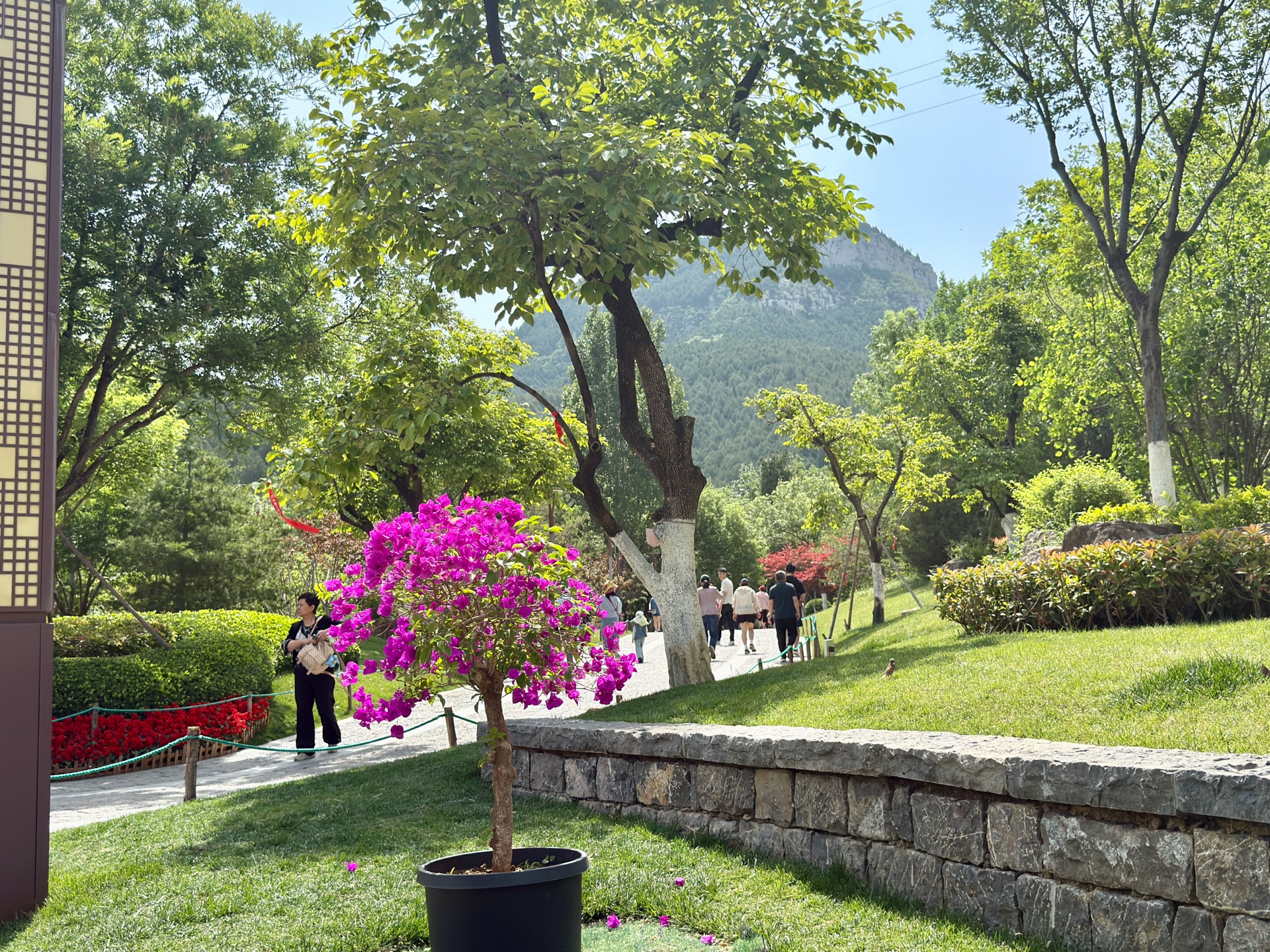 5月18日,初夏的济南佛慧山景区阳光明媚、鸟语花香。绿荫掩映下,三五成群的游客或树下品茗、或载歌载舞、或沿林中小道穿梭山间,尽享游山之乐。