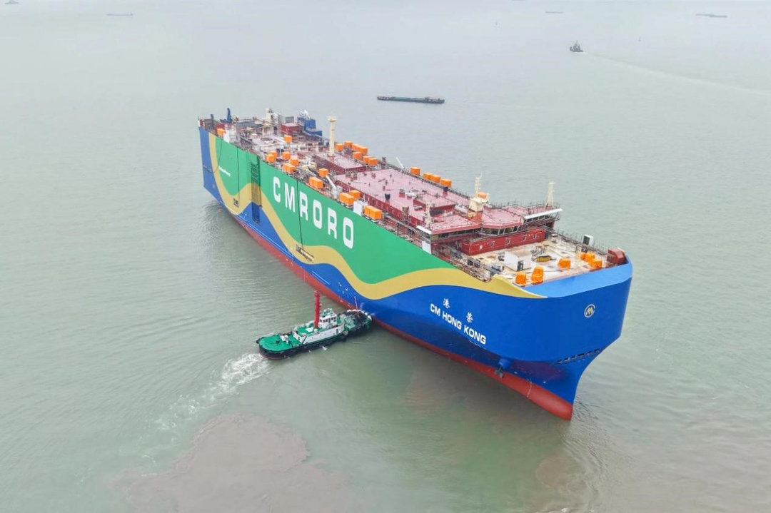5月21日,由招商局集团下属招商轮船订造、招商工业承建的全球首艘9300车甲醇双燃料动力汽车滚装船在江苏南通成功下水。