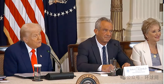 当地时间22日,特朗普(左)在白宫与肯尼迪(中)等官员召开讨论会。图源:美媒