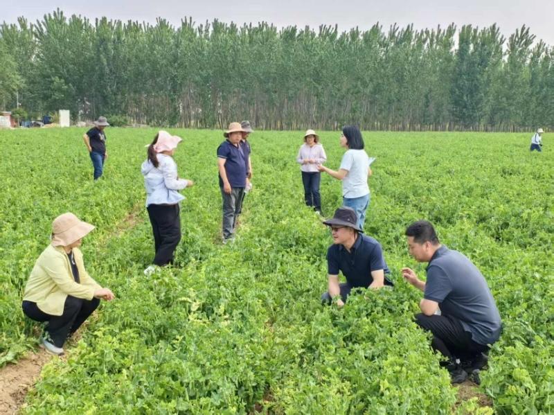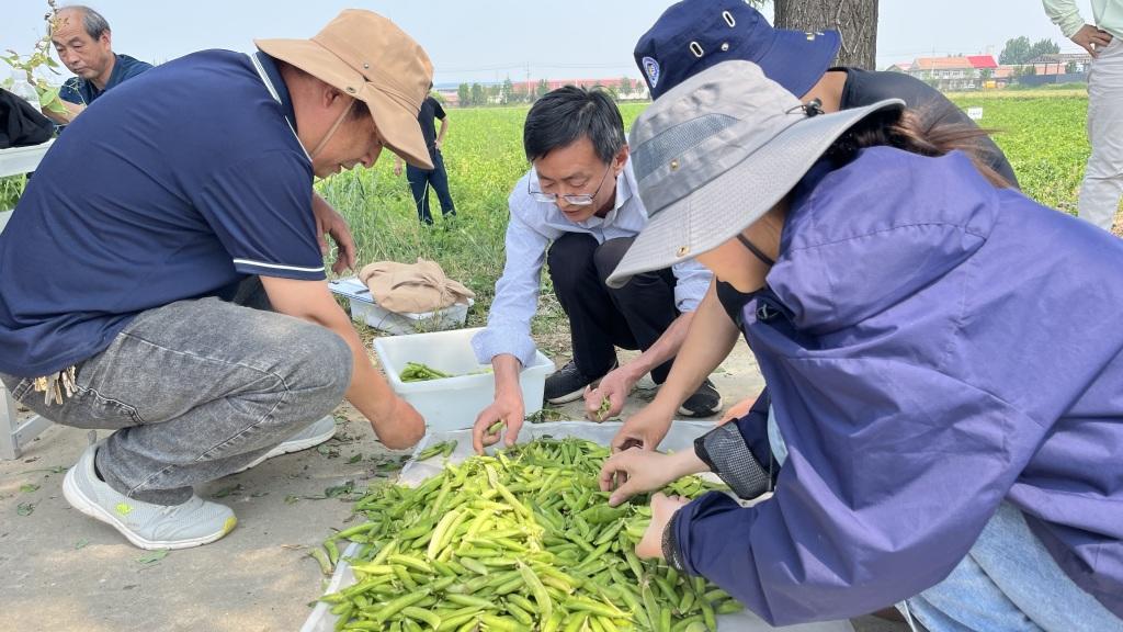 为深入贯彻落实国家农业高质量发展战略,加快豌豆高产高效种植技术的推广应用,2025年5月27日,市农科院豌豆课题组暨国家食用豆产业技术体系青岛综合试验站,在平度市南村镇兰亭村示范基地成功举办“鲜食豌豆大面积单产提升现场观摩会”。本次会议吸引了来自国家食用豆产业技术体系、山东省杂粮产业技术体系的专家团队,以及当地种植合作社负责人、家庭农场主和种植大户代表等40余人参与,共同见证青岛鲜食豌豆产业的技术突破与创新成果。