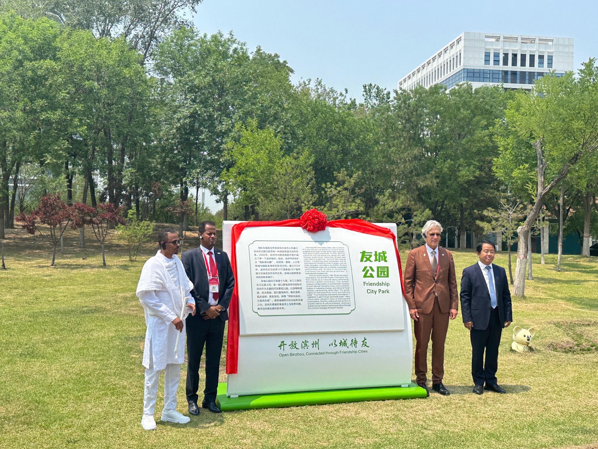 开幕式结束后,与会嘉宾赴友城公园参加了友城公园揭牌、共育“友谊树”仪式。
