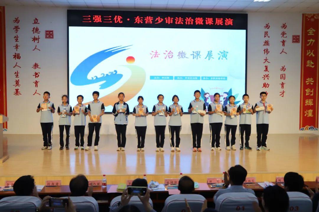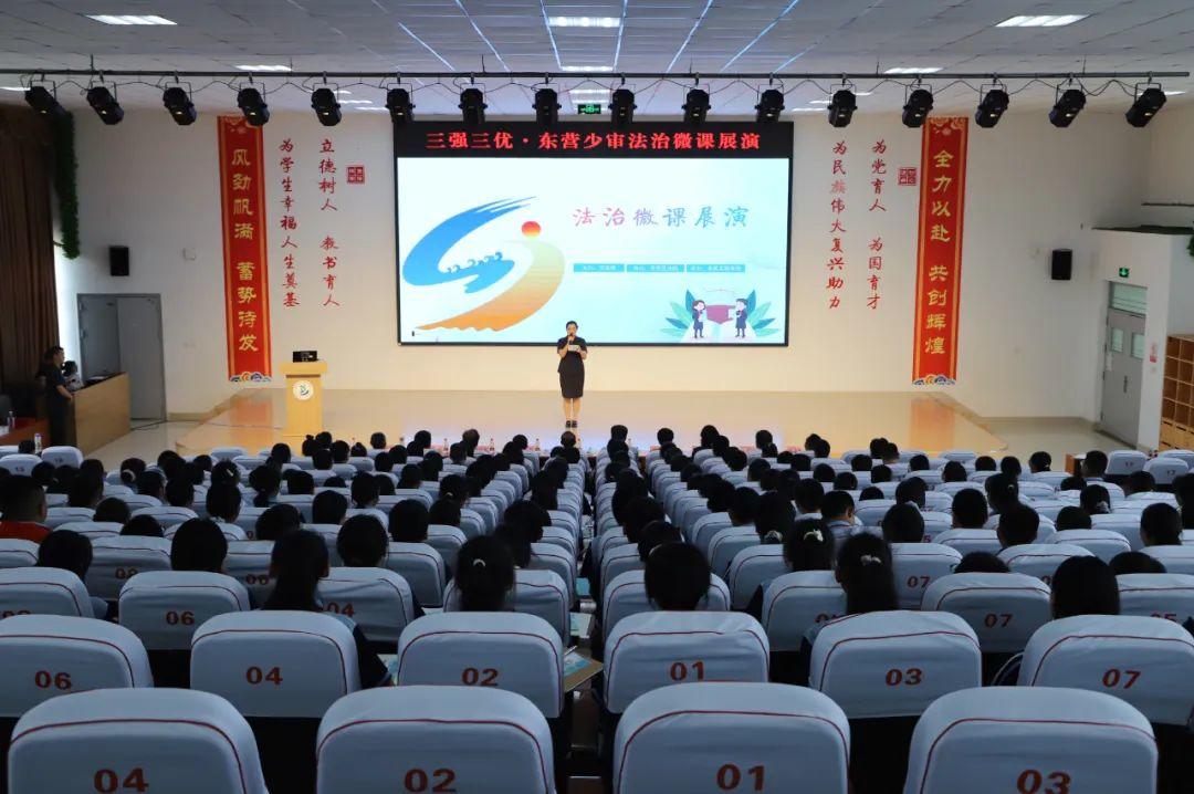 为进一步提升法治教育实效,增强法治副校长履职能力,为青少年健康成长提供更强法治助力,5月30日下午,东营市中级人民法院在东凯实验学校举办“三强三优•东营少审法治微课展演”。东营市中级人民法院党组书记、院长赵国滨,省高级人民法院刑一庭副庭长罗莹,市委政法委副书记刘乃斌,开发区党工委副书记、管委会副主任、胜利教管中心党委书记刘军,市关工委、团市委、市妇联、市人民检察院、市司法局、市教育局、两级法院有关领导和部门负责同志,东凯实验学校六年级、七年级学生代表、教师代表在现场观看了微课展演。